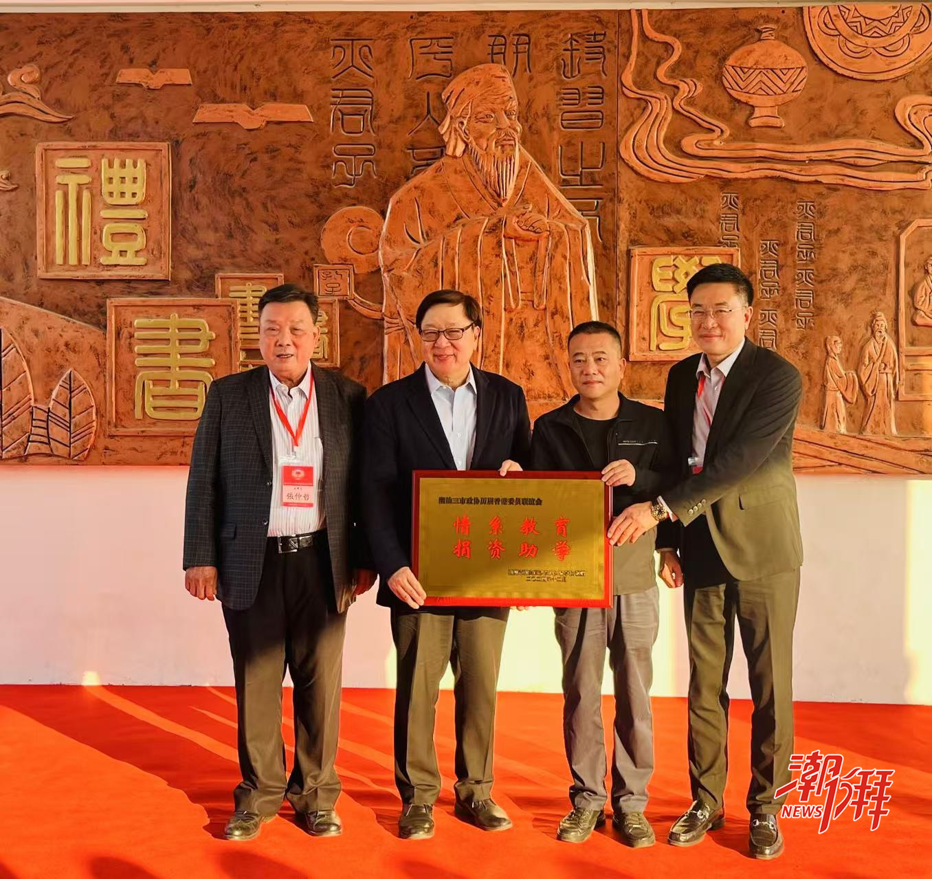 沙溪鎮人民政府向潮汕三市政協歷屆香港委員聯誼會及潮汕三市政協澳門委員聯誼會敬贈“情系教育 捐資助學”牌匾。