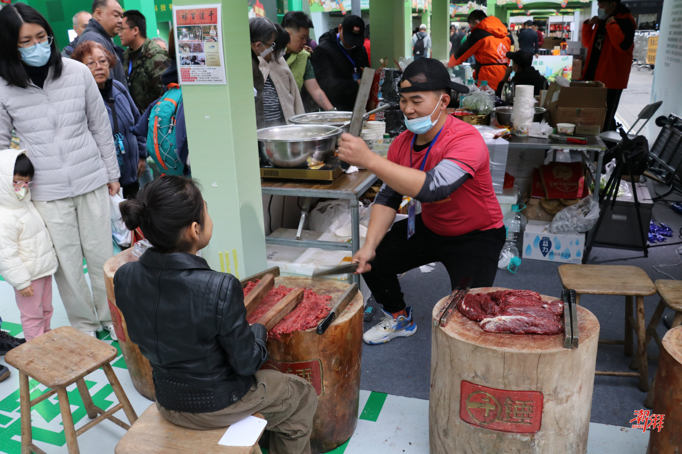 要把核心收緊,選好角度有節(jié)奏地把牛肉槌成肉醬。”潮州市千錘食品有限公司負(fù)責(zé)人劉坤煬現(xiàn)場教深圳小朋友鄧詩楠捶打牛肉丸,在他的教導(dǎo)下,鄧詩楠捶得有模有樣。“參加展銷活動(dòng),一方面能夠拓展銷路、開拓市場,另一方面也希望通過現(xiàn)場捶打牛肉丸的方式展示潮州美食文化。”劉坤煬表示。
