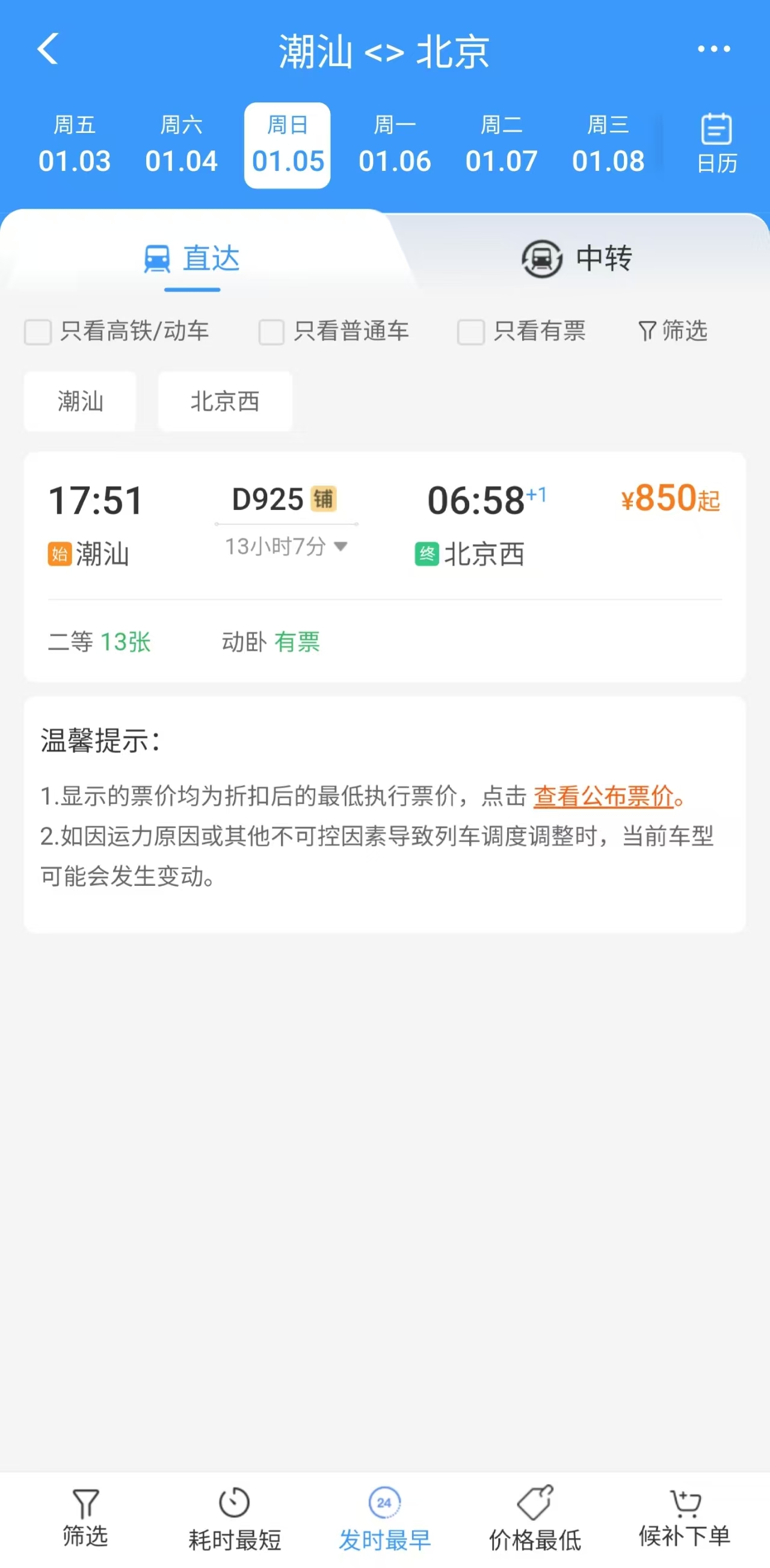 2025年1月5日零時起,全國鐵路將實施新的列車運行圖。調(diào)圖后,廈深鐵路潮汕站首次開行北京西方向的動臥列車(D925/8、D927/6次),按周末線模式,逢周五、周六、周日、周一開行,提供直達北京的優(yōu)質(zhì)服務(wù),將極大滿足北京與潮汕地區(qū)之間居民探親旅游、商務(wù)往來等出行需求。