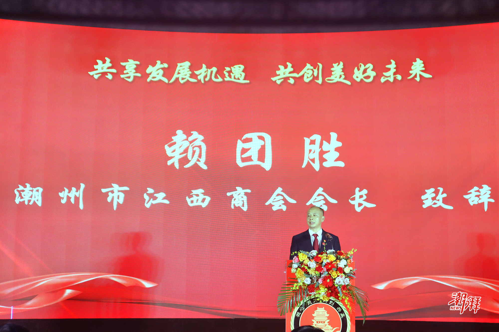 潮州市江西商會(huì)會(huì)長(zhǎng)賴團(tuán)勝致歡迎詞。(攝影:全媒體記者黃慧)