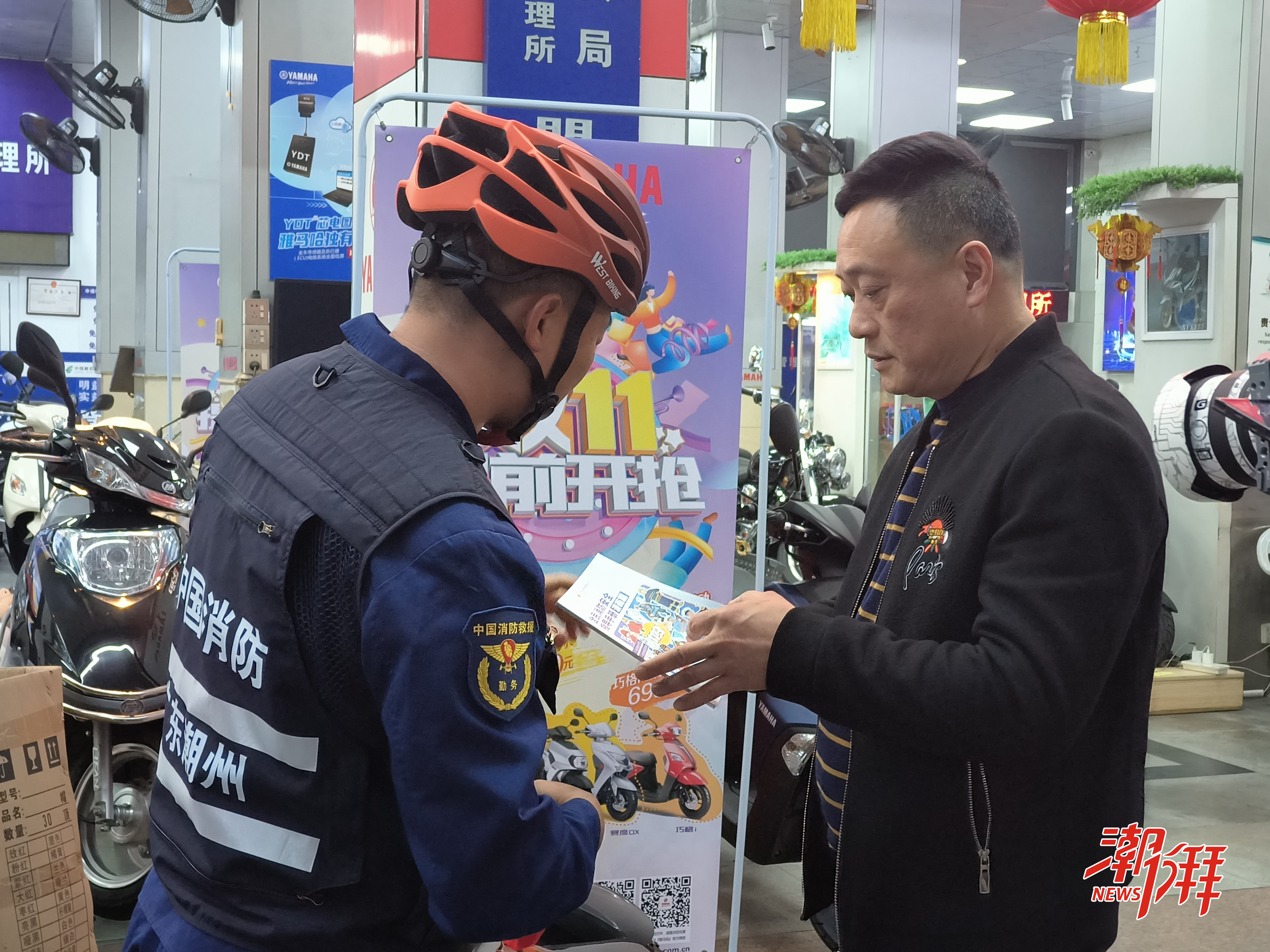 火焰藍騎行隊向市民科普消防安全知識。