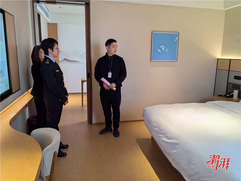 “上個月市市場監管局就對我們酒店進行了價格、服務等方面的指導,我們對此非常感謝。春節期間我們酒店也在指導下提升了服務質量,準備了具有潮州特色的產品和食物,希望能讓酒店成為一個‘窗口’,宣傳潮州的人文風情。”在下午該局開展的檢查行動中,古城區一周邊酒店負責人對記者表示。
