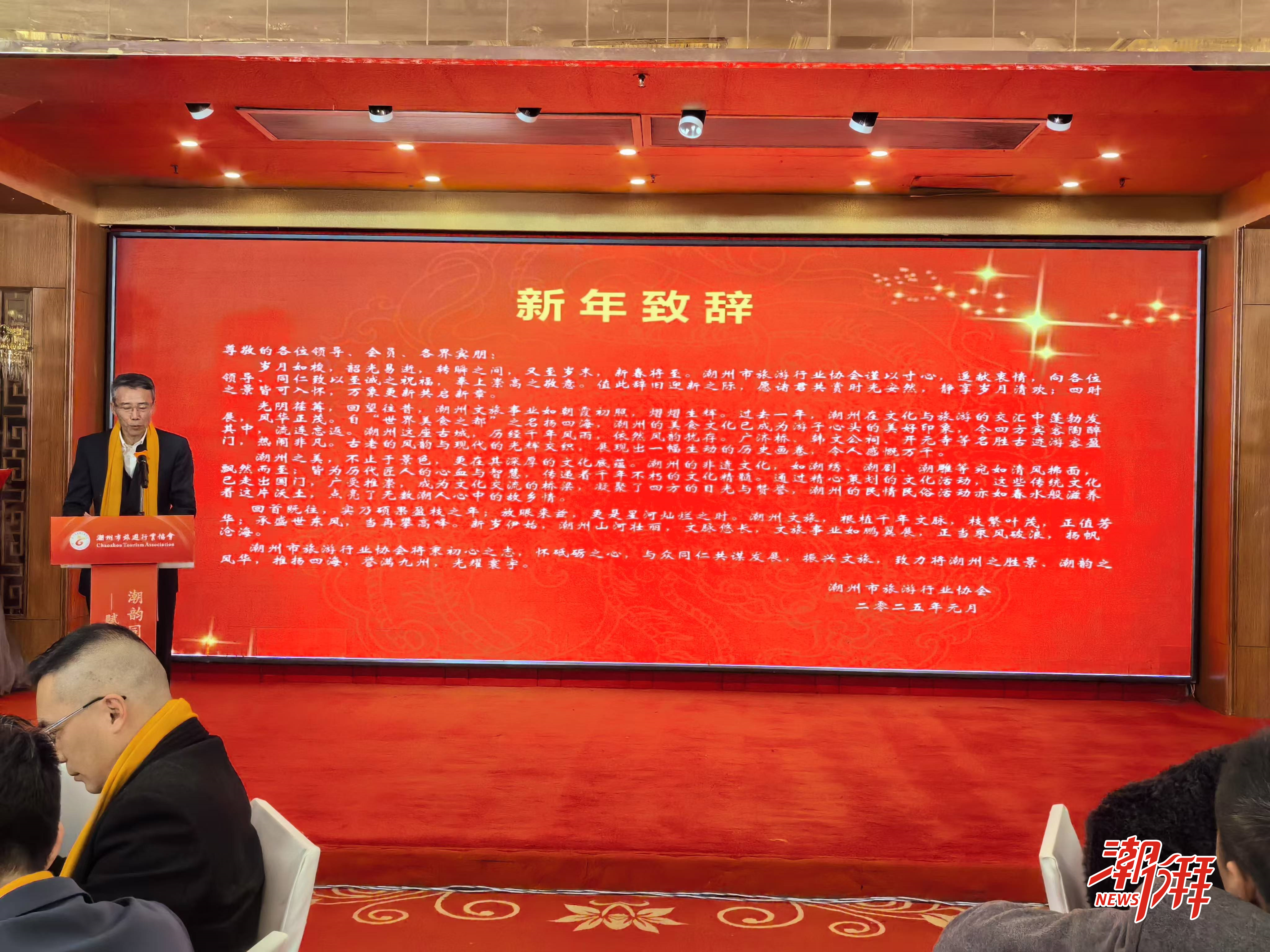 會上,潮州市旅游行業協會全面回顧了2024年工作成果。潮州市旅游行業協會會長王巍作新年致辭,并對潮州旅游的發展提出美好展望。