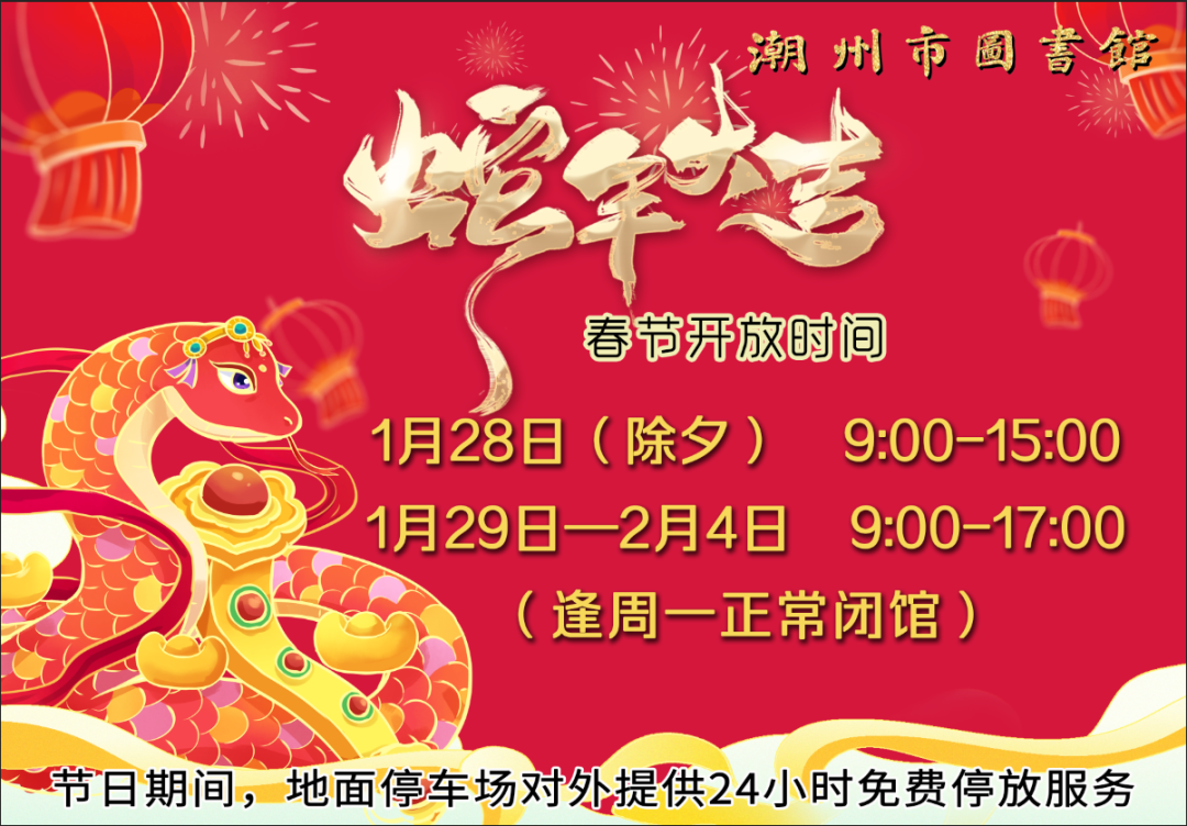 根據《中華人民共和國公共圖書館法》規定,結合我館實際情況,潮州市圖書館節假日開放時間如下: