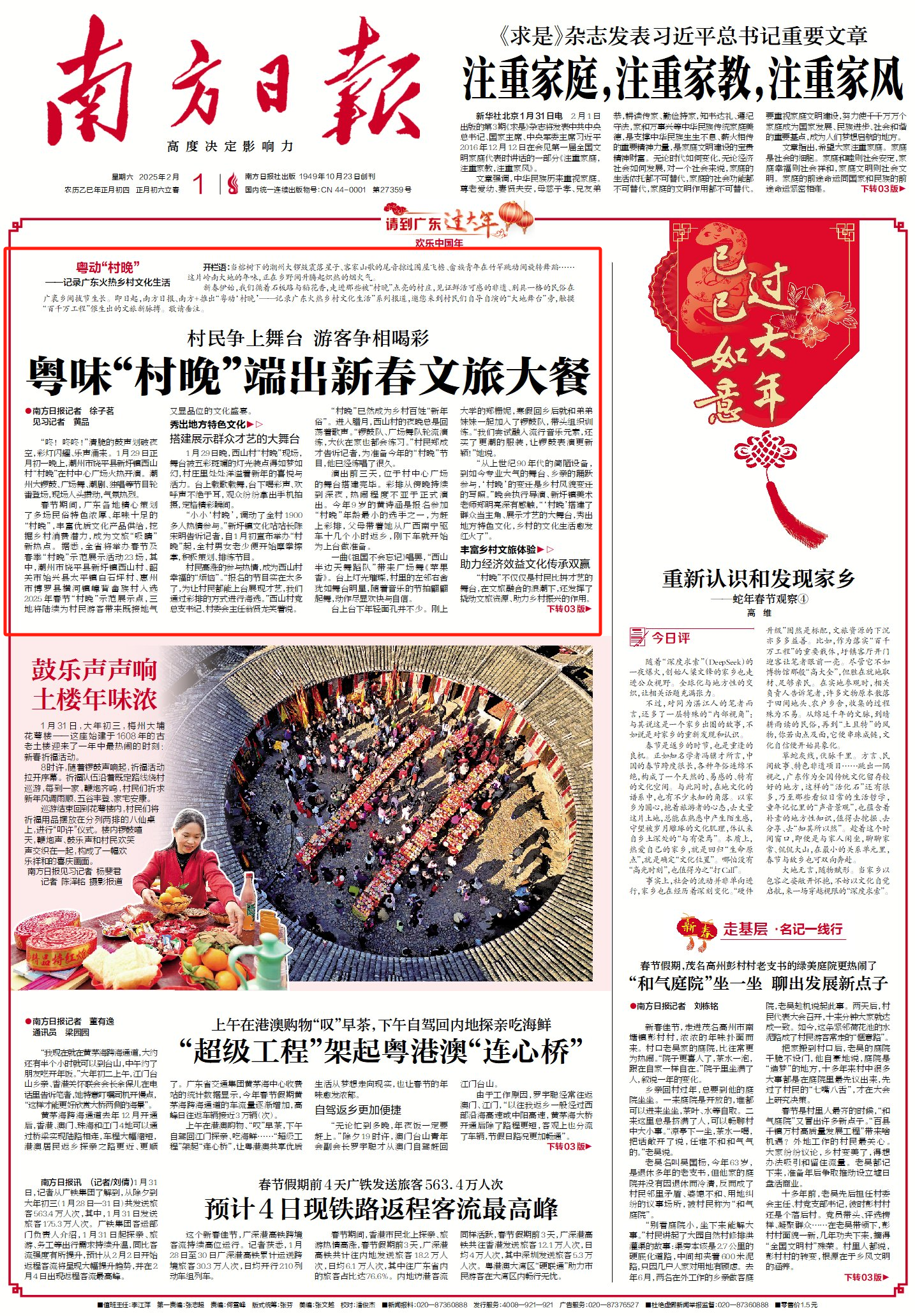 2月1日,《南方日報(bào)》頭版頭條推出報(bào)道《粵味“村晚”端出新春文旅大餐》,聚焦潮州市饒平縣新圩鎮(zhèn)西山村春節(jié)“村晚”,為村民游客帶來既接地氣又顯品位的文化盛宴。以下為報(bào)道原文: