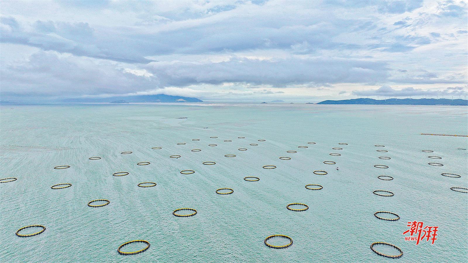 饒平縣柘林灣附近海域,一口口新型重力式深水網箱星羅棋布,蔚為壯觀。 潮州日報全媒體記者 謝平勛 攝