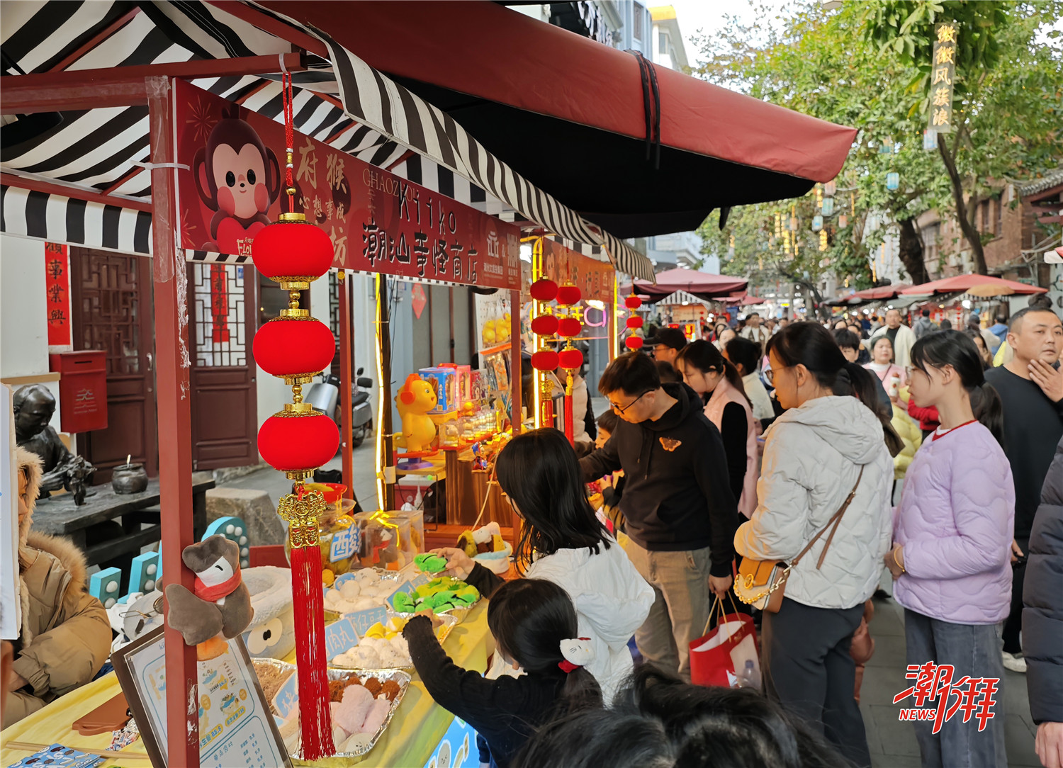 以府樓猴為主題的文創集市,游客購買熱情高漲。潮州日報全媒體記者 莊園 攝