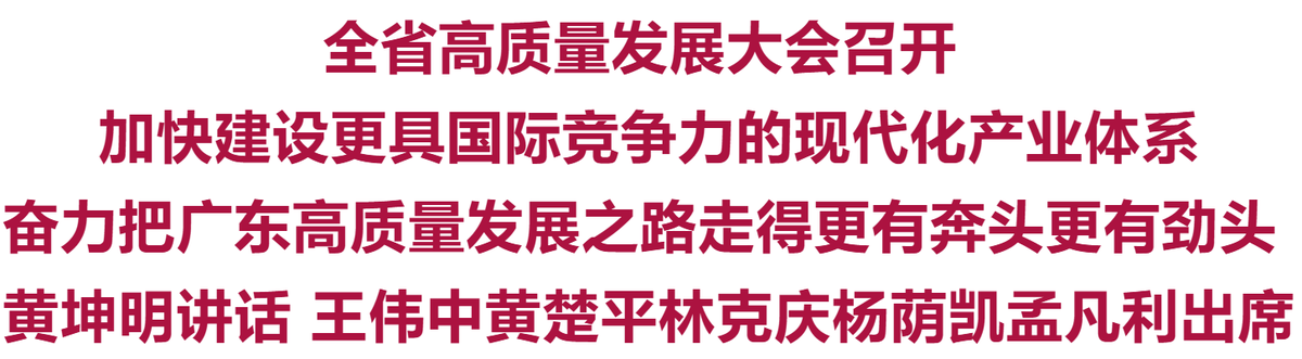 黃坤明在講話中首先代表省委、省政府向全省父老鄉(xiāng)親,向所有關(guān)心支持廣東改革發(fā)展的各位領(lǐng)導(dǎo)、各位同事、各位朋友致以美好的新春祝福,向春節(jié)期間堅守崗位、春節(jié)之后投入工作的各行各業(yè)、各條戰(zhàn)線的同志們致以親切慰問和誠摯感謝。他指出,產(chǎn)業(yè)興則經(jīng)濟興,產(chǎn)業(yè)強則國家強。改革開放以來,我們黨始終把發(fā)展作為執(zhí)政興國的第一要務(wù),始終注重謀產(chǎn)業(yè)抓生產(chǎn),領(lǐng)導(dǎo)人民創(chuàng)造了經(jīng)濟快速發(fā)展和社會長期穩(wěn)定的偉大奇跡。進入新時代,在習(xí)近平經(jīng)濟思想指引下,我們堅持從實際出發(fā),走自己的路、走正確的路,牢牢抓住實體經(jīng)濟,加快構(gòu)建以先進制造業(yè)為支撐的現(xiàn)代化產(chǎn)業(yè)體系,創(chuàng)造了中國經(jīng)濟發(fā)展的新奇跡。習(xí)近平總書記對廣東產(chǎn)業(yè)發(fā)展親切關(guān)懷,指出落實新發(fā)展理念、推動高質(zhì)量發(fā)展是根本出路,強調(diào)實現(xiàn)質(zhì)的有效提升和量的合理增長根本途徑在于加快產(chǎn)業(yè)轉(zhuǎn)型升級,要求我們打造具有全球影響力的產(chǎn)業(yè)科技創(chuàng)新中心,有力指引我們深刻把握立省之本、強省之基,牢牢抓住現(xiàn)代化產(chǎn)業(yè)體系這個載體,加快發(fā)展新質(zhì)生產(chǎn)力,扎實推動高質(zhì)量發(fā)展。