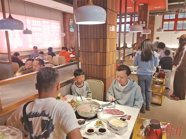 離午餐時間尚有一段間隙,潮州古城牌坊街的一家牛肉火鍋店內已然人聲鼎沸。熱鬧的交談聲、餐具的碰撞聲相互交織,宛如一首充滿煙火氣的交響曲。來自五湖四海的游客將店內擠得滿滿當當,水泄不通。他們之中,有的伸長脖子,眼巴巴地盼著美味上桌,眼神里滿是期待;有的早已大快朵頤,盡情咂摸著口齒間的鮮香,全身心沉浸在這場馥郁芬芳、令人陶醉的味覺盛宴里。
