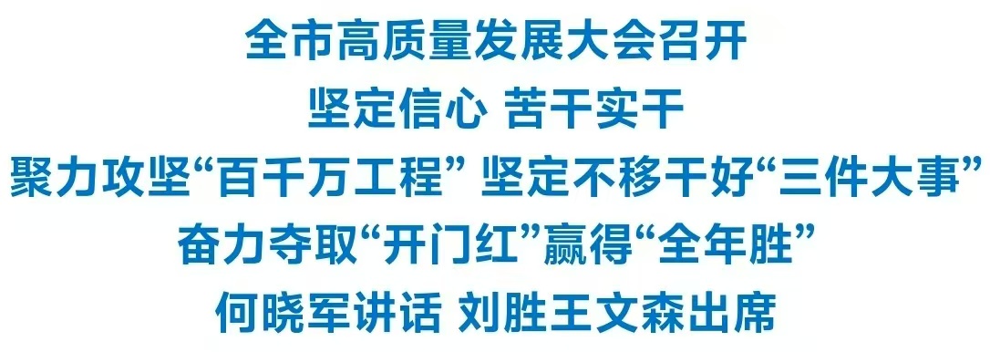 “實干是引領我們在現代化建設中奮進的精神引擎。”何曉軍強調,2025年是“十四五”規劃的收官之年,更是習近平總書記視察潮州5周年,要以“等不起”的緊迫感、“慢不得”的危機感、“坐不住”的責任感,奮力奪取“開門紅”、贏得“全年勝”。一要堅定不移大抓工業產業,挺起高質量發展“硬脊梁”。以全域思維優化產業布局,堅持以工業武裝農業,構建“政策賦能+平臺集聚+鏈式招商”發展體系,壯大特色產業集群,建設現代化海洋牧場,打造一批工業重鎮強鎮;以系統思維構建產業體系,聚焦八大支柱產業開展鏈式改造,搶占“大風電產業”千億新賽道,發展新材料、新能源、生物醫藥等新增長極,建立優質企業梯度培育體系,加快構建現代化產業體系;以戰略思維攻堅重大項目,全面打響“重大項目突破年”行動,全力沖刺項目策劃、項目投資、項目招商“三個突破”,以增量帶存量,為未來發展強筋壯骨。二要堅定不移提升城鄉風貌,繪就全域美麗“新畫卷”。深入開展“城鄉品質提升年”行動,以“一天當作兩天用”的拼勁,在“點”上突破,培育打造仙洲島等一批富有潮州特色、可參觀可借鑒的精品亮點項目;在“線”上提升,鞏固深化建設好廣東“東大門”提升工程成效,深入推進“三個三”攻堅行動,塑優城市門戶風貌;在“面”上拓展,協同推進省級典型鎮村創建和市級全域培育,著力建設“最宜居秀美城鄉”。三要堅定不移做好“僑”的文章,凝聚四海同心“大團結”。以“家”為根凝聚潮人力量,搭建常態化溝通機制,全力辦好第二十三屆國際潮團聯誼年會;以“文”為魂喚醒鄉愁記憶,實施中華文化、潮州文化傳播工程,挖掘展示潮僑潮商故事,打造世界潮人尋根地;以“情”為系深化合作共贏,加強與潮屬商會聯系合作,健全完善惠僑暖企制度,最大限度團結廣大潮人參與“百千萬工程”、融入現代化建設。