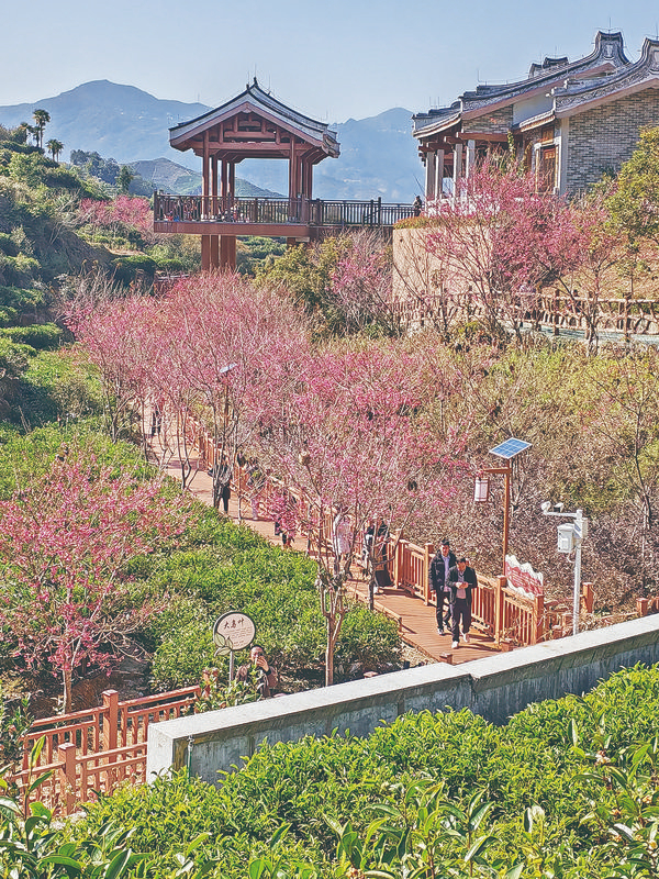 “漫步鳳凰茶谷示范帶,沉醉于一路的風景與茶香?!辈簧偈忻裼慰捅硎?,春到這里賞花,不僅是一場視覺與嗅覺的盛宴,更是一次心靈與文化的洗禮。