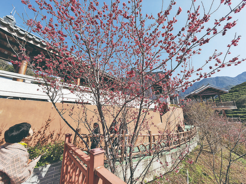 公路旁邊,停放了長長的車隊,從車牌可知,游客來自潮汕三市?;蛴巫?,或煮水品茗,置身于天地之間,感受春天的輕撫。來自汕頭的游客林女士興奮地說:“我從來沒在茶園中賞過櫻花,粉白色的櫻花簇擁枝頭,宛如輕紗覆蓋,又似晨曦中的云霞,與遠處的翠綠茶園交相輝映,構(gòu)成了一幅動人心魄的畫卷,這趟來得太值了。”