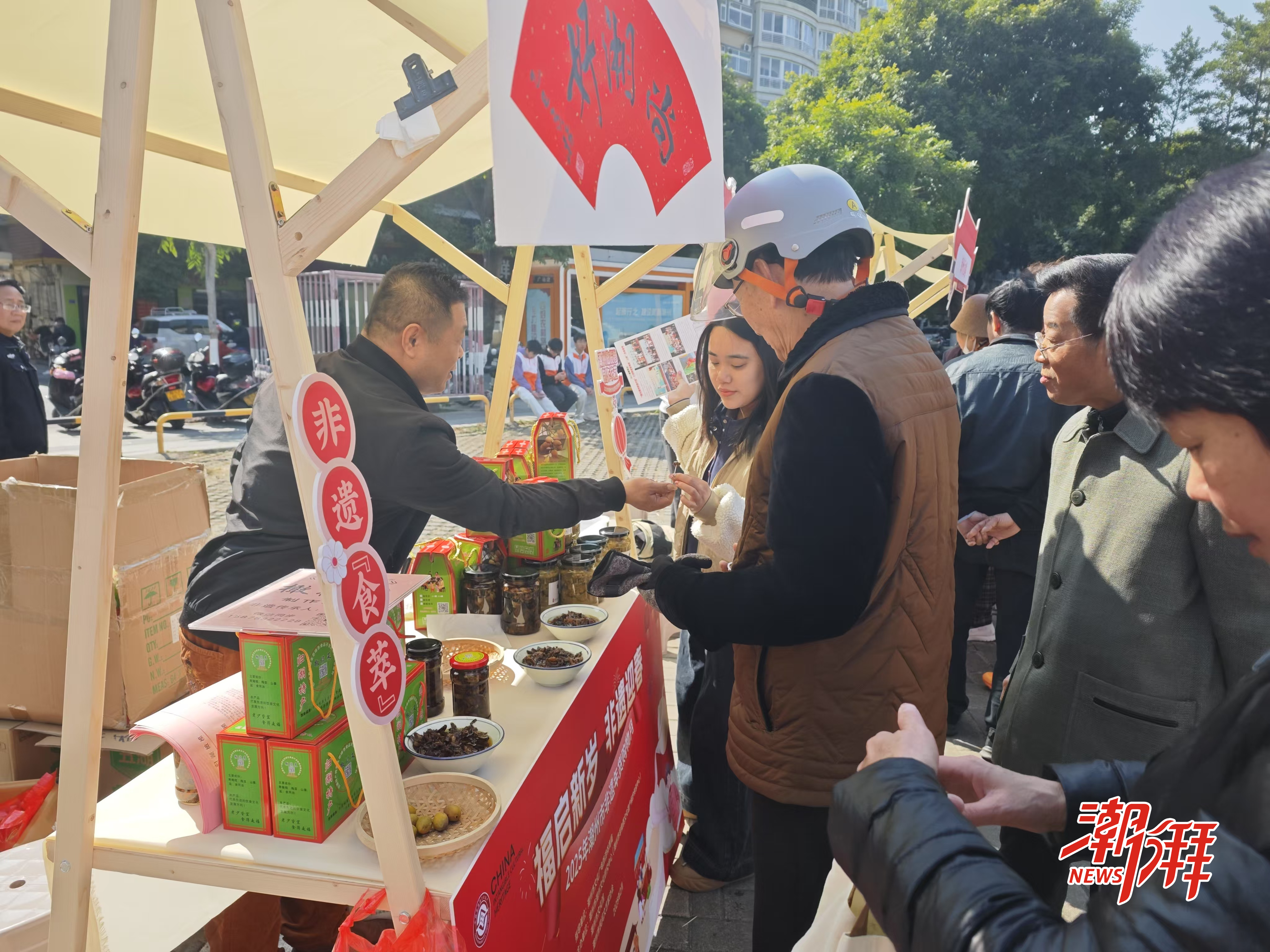 活動(dòng)現(xiàn)場(chǎng)設(shè)有非遺好物展銷區(qū)、“茶和天下”工夫茶藝互動(dòng)區(qū)、非遺歌舞展演區(qū)和花燈制作體驗(yàn)區(qū)四大板塊。非遺好物展銷區(qū)分為“食萃”和“藝韻”兩大專區(qū),共20個(gè)展銷攤位。市民游客不僅能品嘗浮山柿餅、佛手果老香黃等特色美食,還能欣賞大吳泥塑、潮州抽紗等精美技藝,近距離領(lǐng)略非遺的獨(dú)特韻味。
