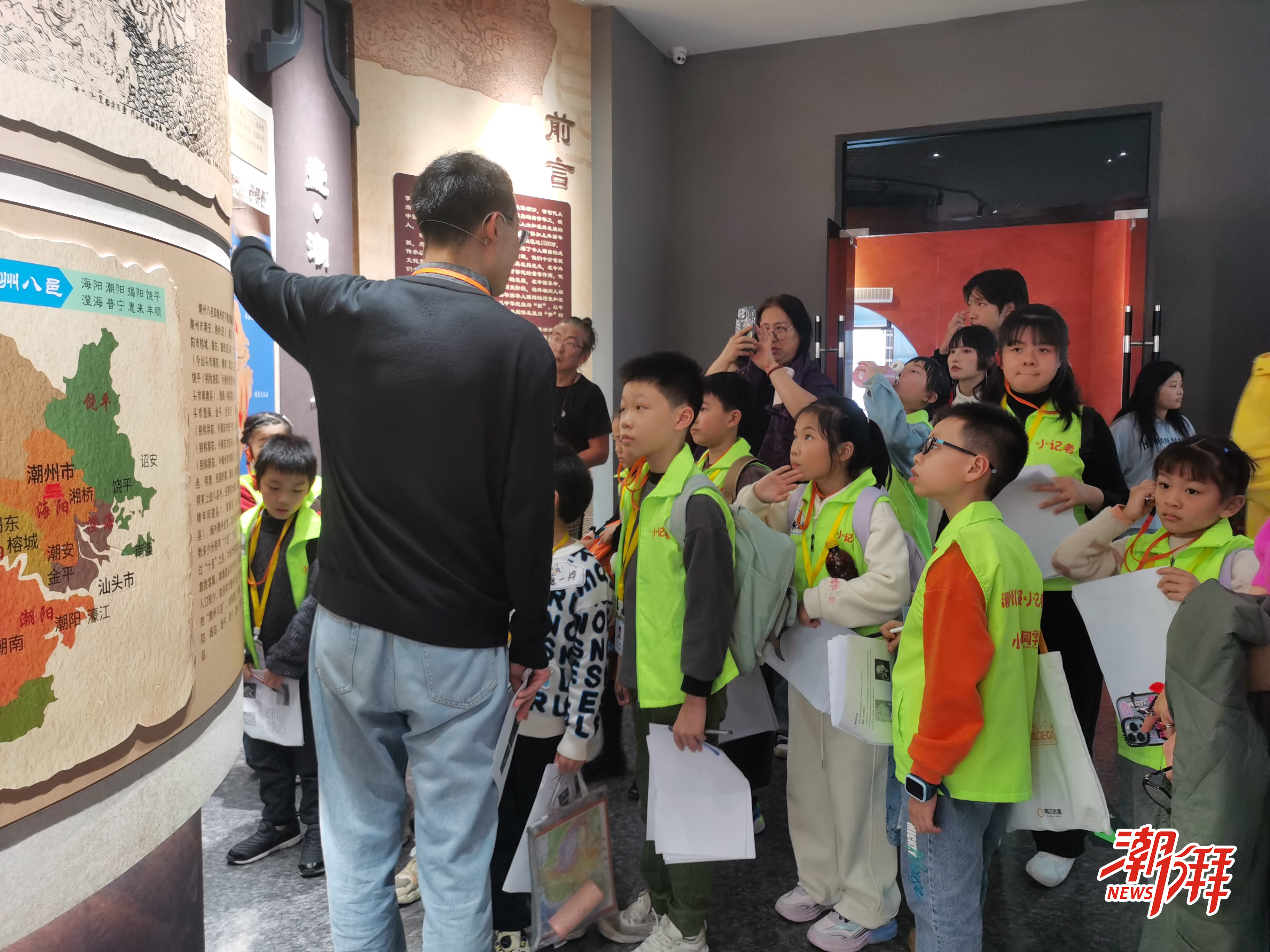 潮州通史館內(nèi),樂(lè)樂(lè)老師給小記者們“陳橋文化”。