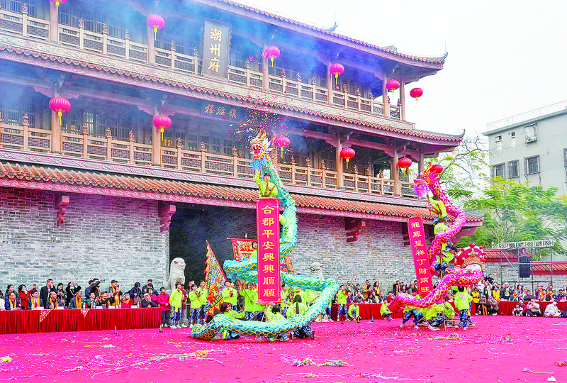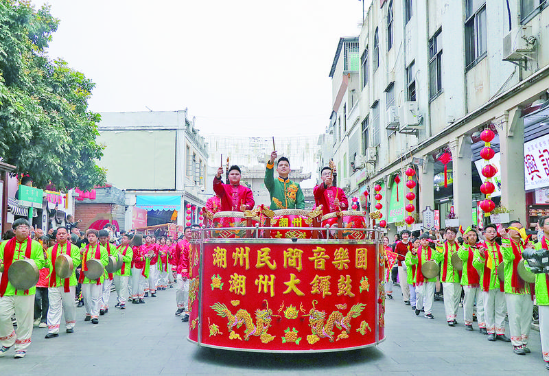 青龍廟會不僅是潮州人民的歡慶盛會,也是全球潮人的一次大團圓。活動中,來自世界各地的多個潮人社團代表方隊,高舉團旗在巡游隊伍中亮相。海內外潮人與家鄉父老鄉親一起高喊著祝福語。質樸的言語中,蘊含著對家鄉深情的祝福與對未來滿滿的期待。