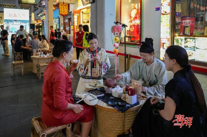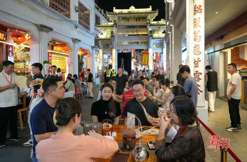 10月18日晚,潮州古城東門街燈火通明,歌聲嘹亮,人流如織,2024潮州工夫茶大會系列活動之潮·工夫集——圍爐觀茶音樂茶會在這里舉行。活動聚焦茶、音樂和非遺,通過沉浸式音樂茶會的形式,還原“家門口”喝茶的場景,邀請市民游客煮茶品茗,把盞論道,領略潮州工夫茶文化的深厚底蘊。