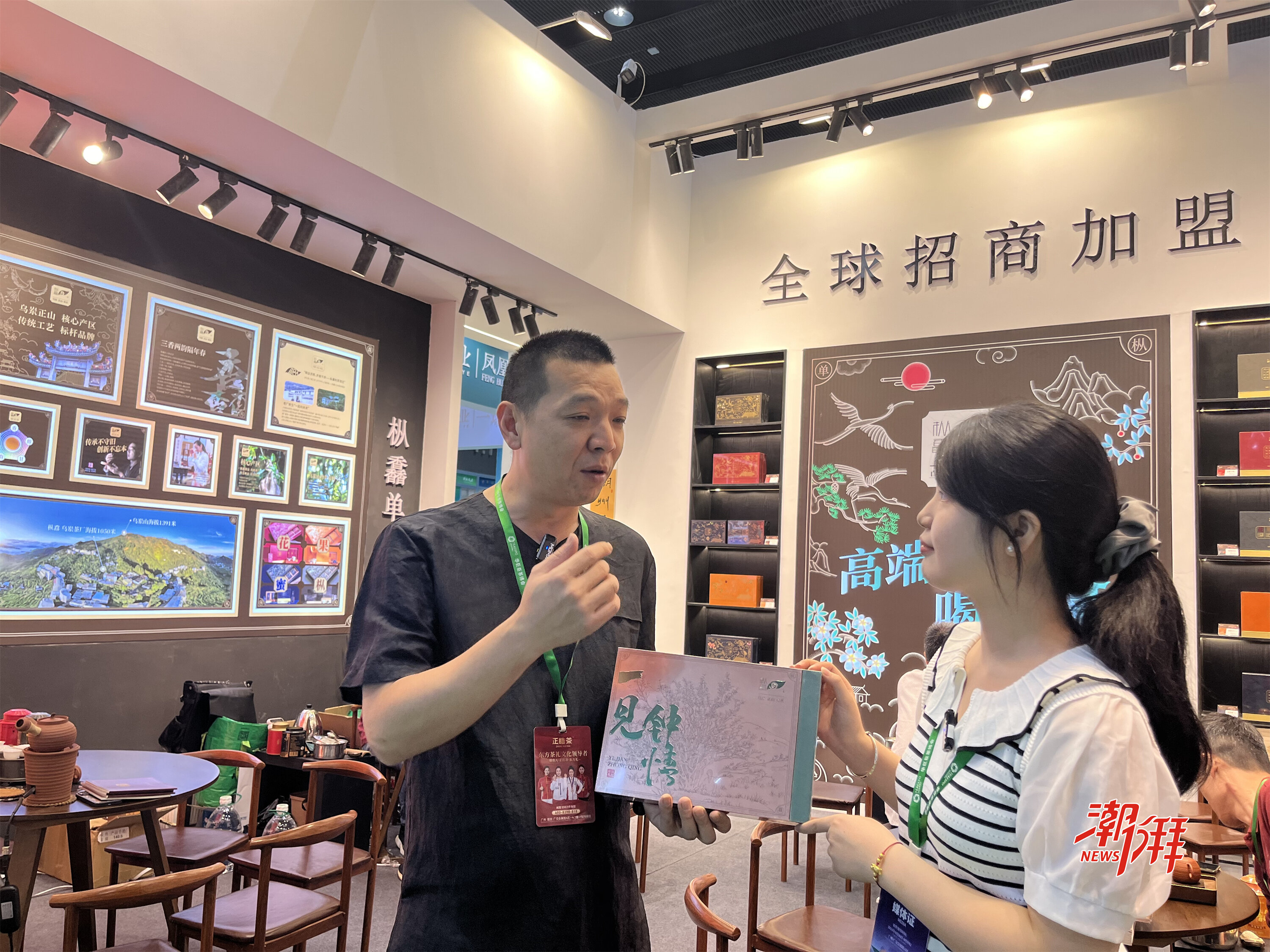 外包裝像書本的“單叢雅集”系列、沖泡方便的“食茶看戲”系列……潮州小瓊大富茶業有限公司展位也吸引了不少人駐足。這家公司包裝將時尚與傳統相結合,既有小袋包裝,又有大罐包裝,還有袋泡茶等,讓年輕人隨時隨地、快速簡便地喝茶。