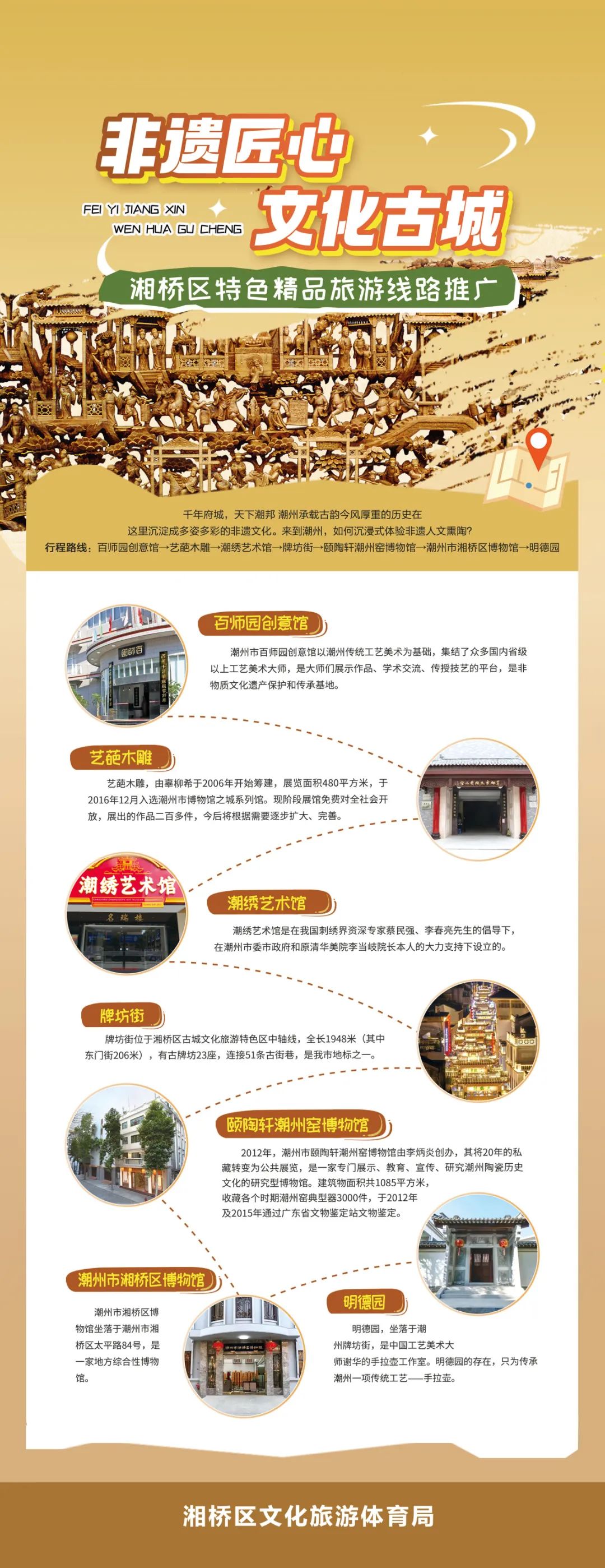 同時,全區34家市博物館之城系列館,數十個大師工作室和非遺精品展示基地免費向市民游客開放,集中展示潮繡、手拉壺、潮州彩瓷、潮州珠繡等諸多非遺主題精品,風格各異的非遺珍品,靜候各位游客前往探索品鑒。