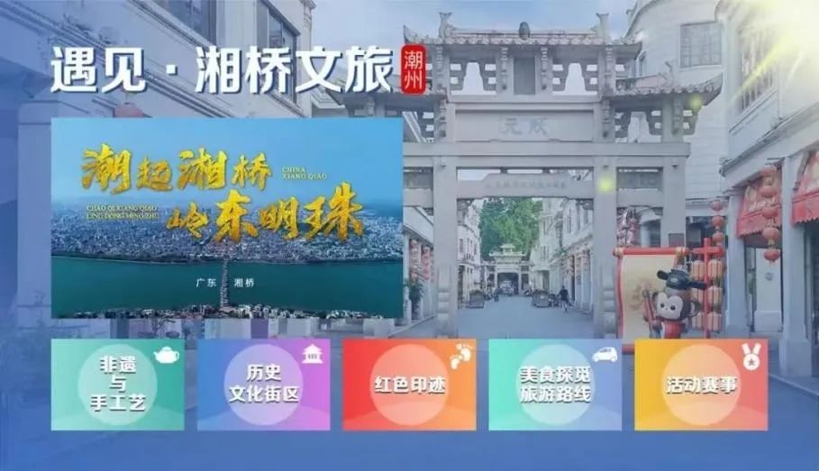 區文旅體局聯合潮州廣電公司,打造并推出“遇見·湘橋文旅”電視專區,包含“非遺與手工藝”“歷史文化街區”“紅色印跡”“美食探覓”“活動賽事”“旅游線路”六大板塊,通過高清視頻、圖文展播形式,向全省有線電視家庭用戶、旅潮游客宣傳潮州、推介湘橋。