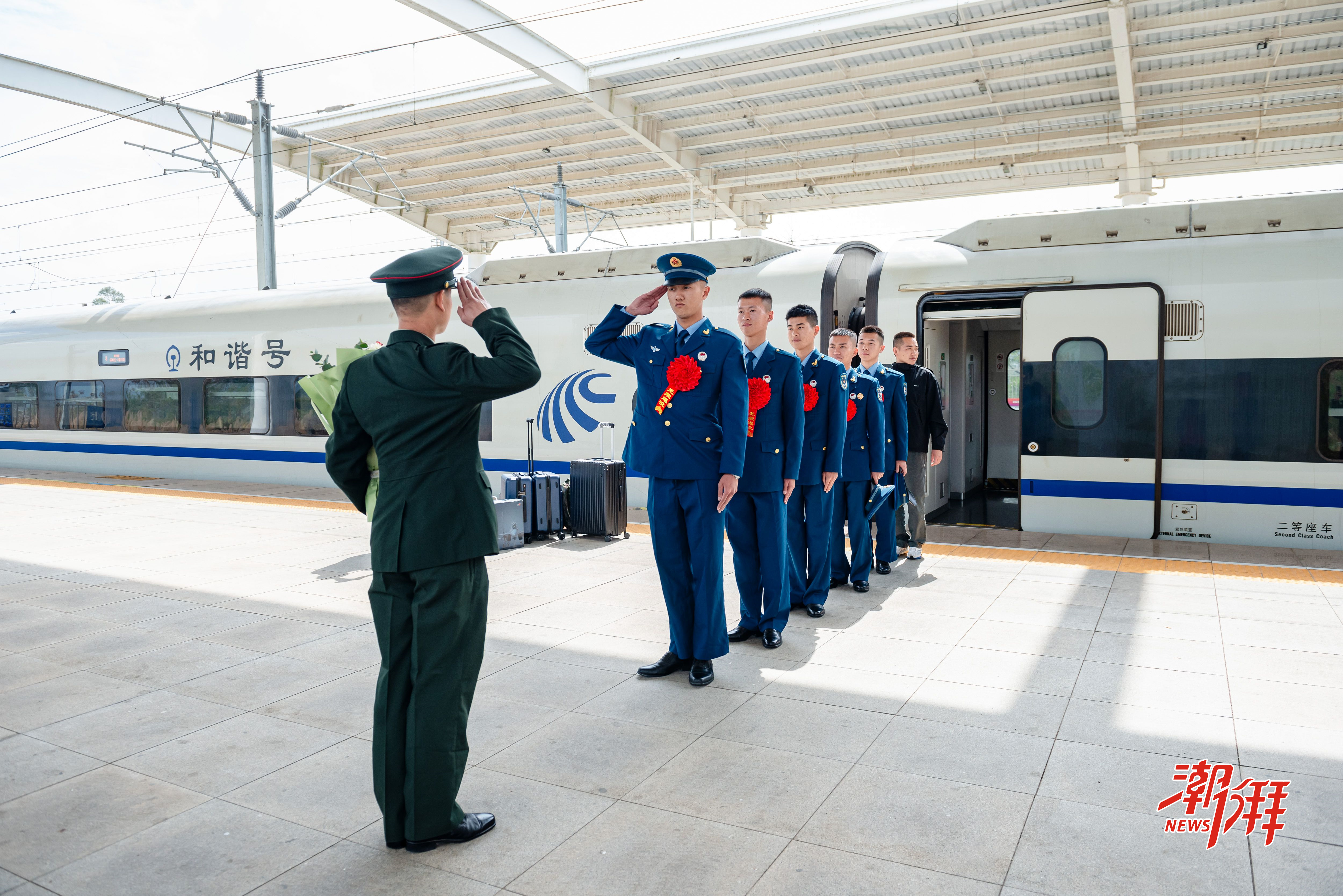 參軍光榮,退役榮光。在儀式現場,“熱烈歡迎饒平退役軍人光榮返鄉”“退伍不褪色,建功新時代”等橫幅耀眼奪目,退役軍人家屬手持鮮花和“參軍光榮”“退役榮耀”等小標語翹首以盼。在人群中,一位身著筆挺軍裝、掛滿榮譽勛章的12年軍齡退役兵哥哥尤為引人矚目,他早早挺立在站臺前,滿懷期待地等候著完成春季服役、戎滿歸來的弟弟。隨著列車進站,車門緩緩開啟,弟弟在踏出車廂看到哥哥的瞬間,猛然站定,以一個標準而莊嚴的軍禮,向哥哥表達著源自心底、超越言語的崇高敬意和深厚情感。這觸動人心的一幕,成為兄弟情誼與軍人榮耀的完美交融。