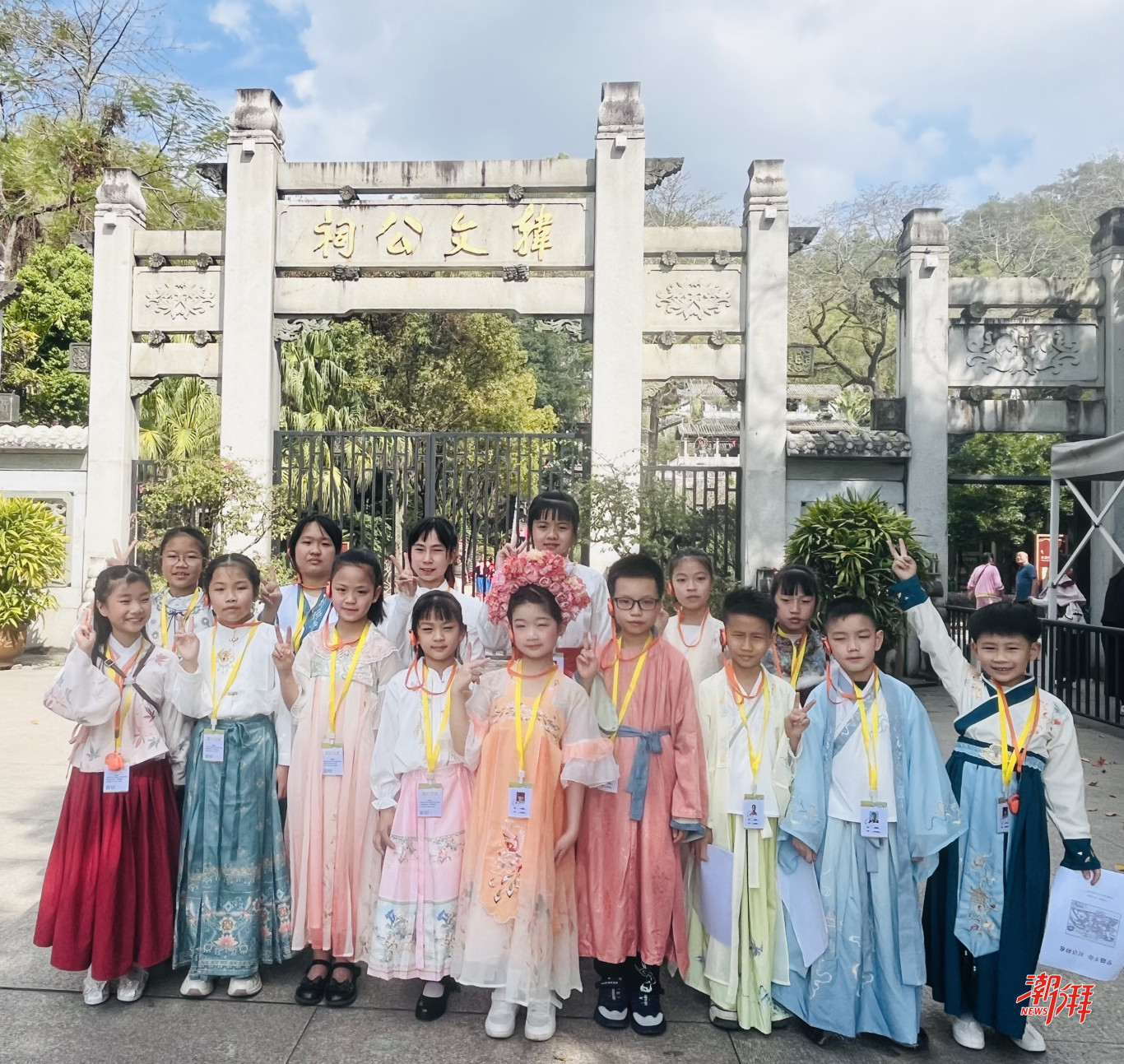本次活動是由潮州日報·小潮同學與行走的貓頭鷹課堂聯合為小記者們精心打造的人文課程。在華南師范大學歷史教育碩士樂樂老師的帶領下,小記者們身著漢服,走進韓文公祠,了解韓愈的傳奇人生及他在潮州的事跡。