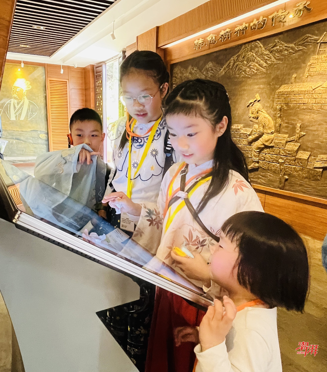 小記者們通過智能電子設備了解韓文公祠的前世今生。