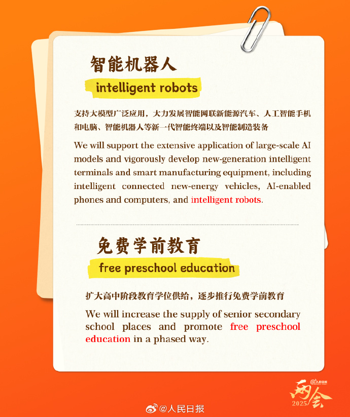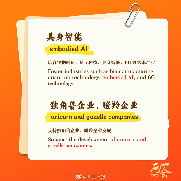 “具身智能”“瞪羚企業”“職普融通”“耐心資本”“育兒補貼”……政府工作報告里的新詞熱詞咋翻譯?這組雙語卡片請查收↓↓實用轉存!