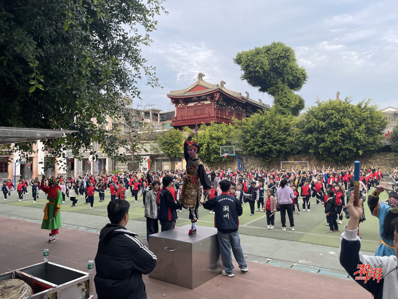 聯正實驗學校的經歷,只是英歌舞進校園的一個生動片段。在潮州,越來越多的學校正積極推動英歌舞走進校園,湘橋區城南小學便是其中的典型代表。