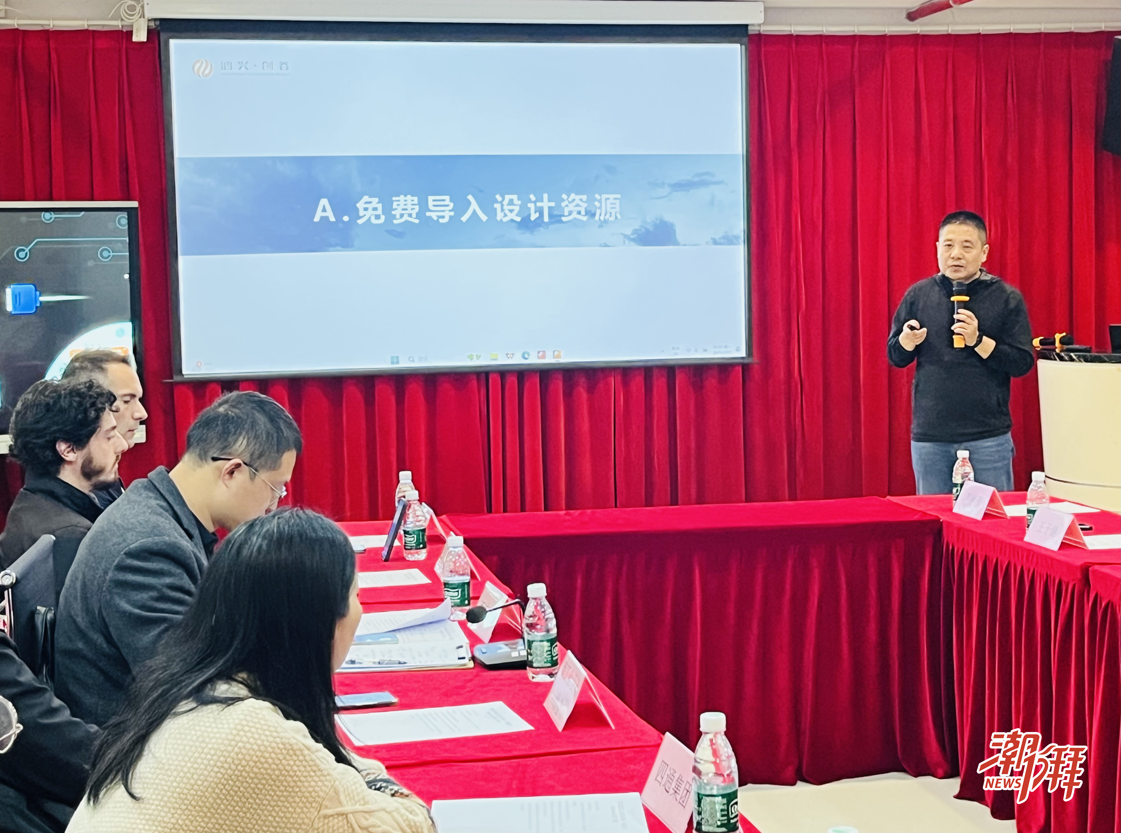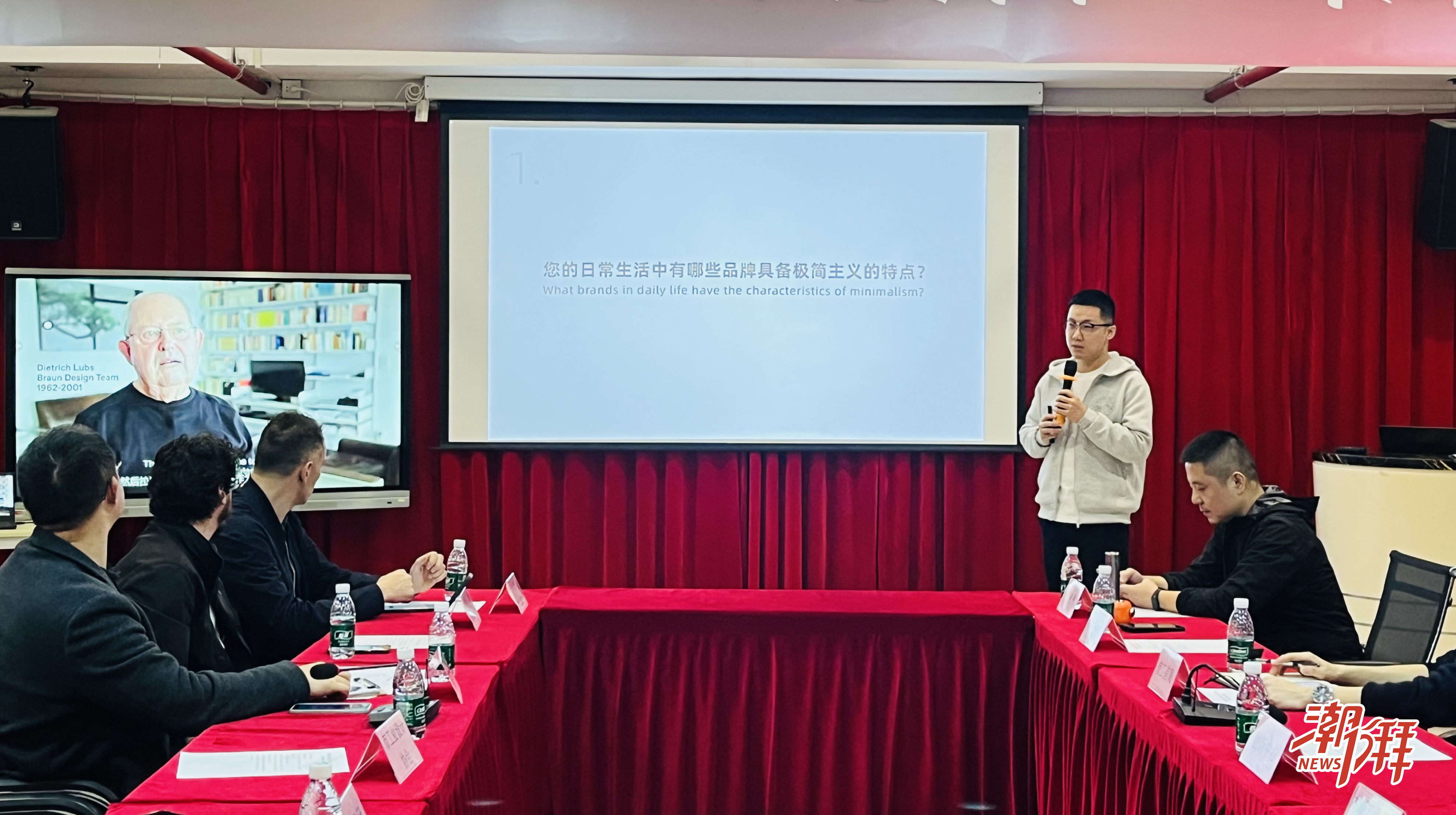 德國拉姆斯設計基金會的駐華代表王子健作陶瓷與燈飾融合設計趨勢相關主題分享。(潮州日報全媒體記者 陳瑩 攝)