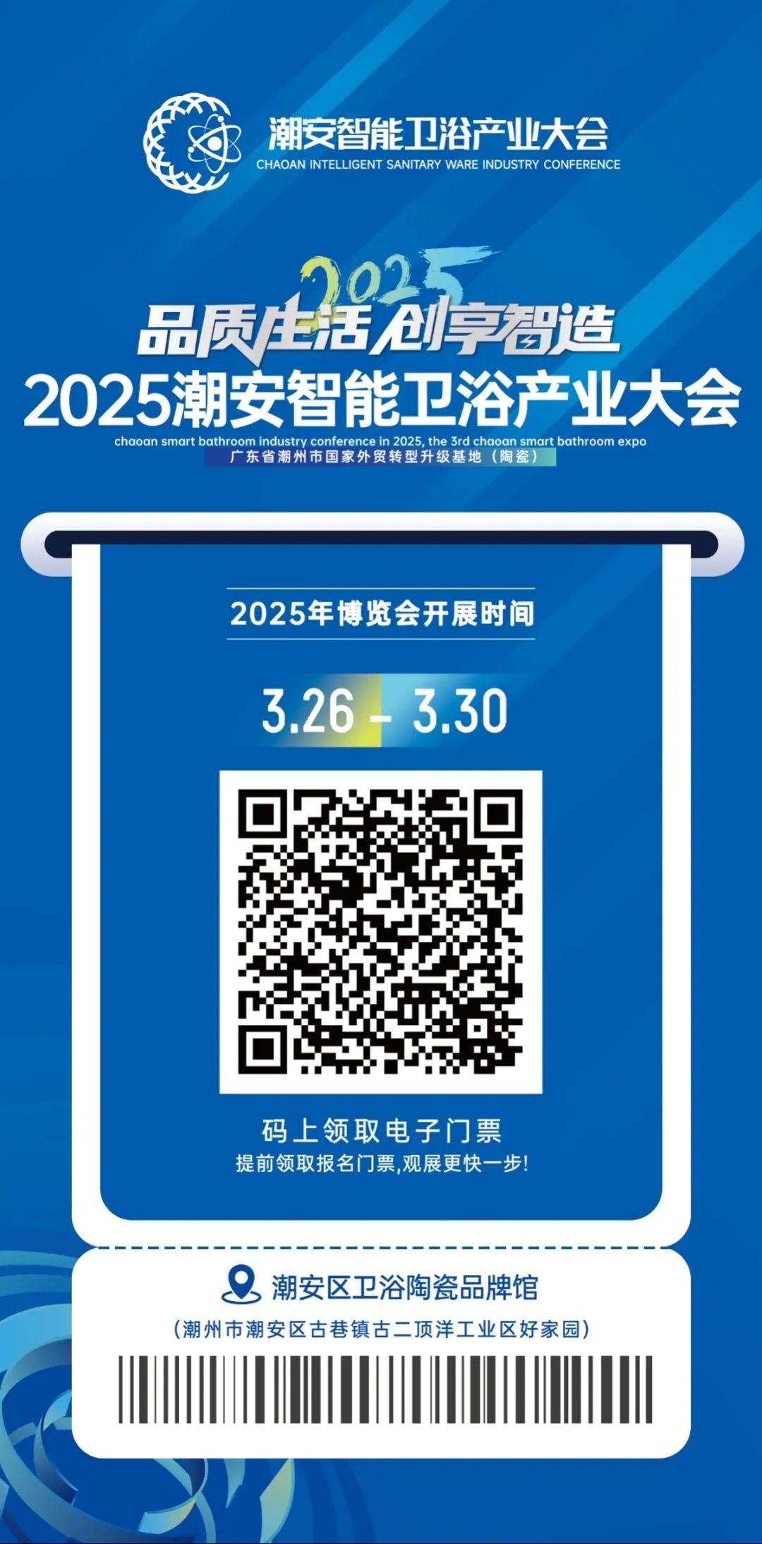 3月26日至30日,2025潮安智能衛浴產業大會暨第三屆潮安智能衛浴博覽會將在潮安衛浴陶瓷品牌館舉行。本屆大會以“品質生活,創享智造”為主題,行業新秀與實力老牌企業將匯聚一堂,展示創新成果、彰顯品牌風采。