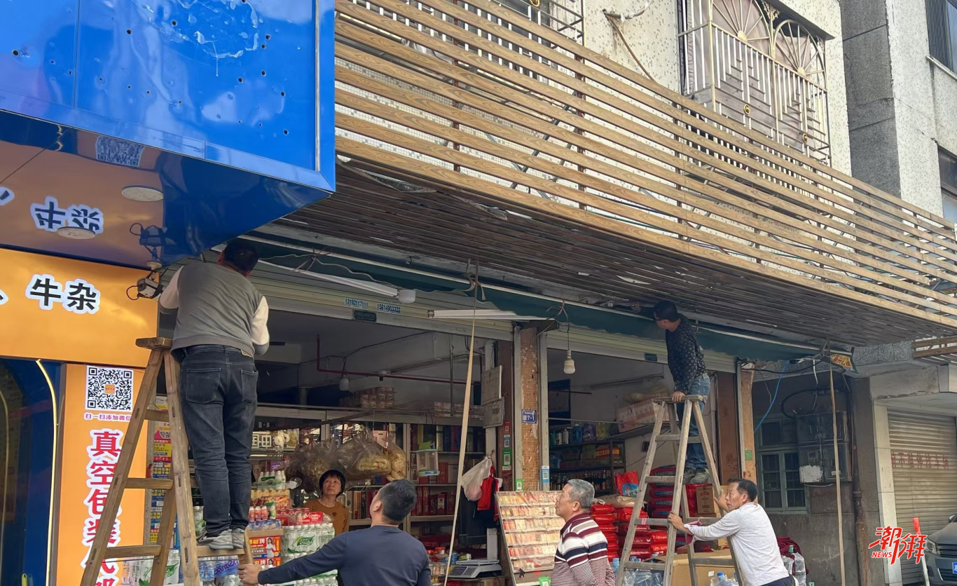 近日,在湘橋區城西街道仙洲島的商業街沿線,工人們正有條不紊地拆除著違規搭建的遮雨棚、遮陽棚,原本雜亂的街面變得開闊整潔。