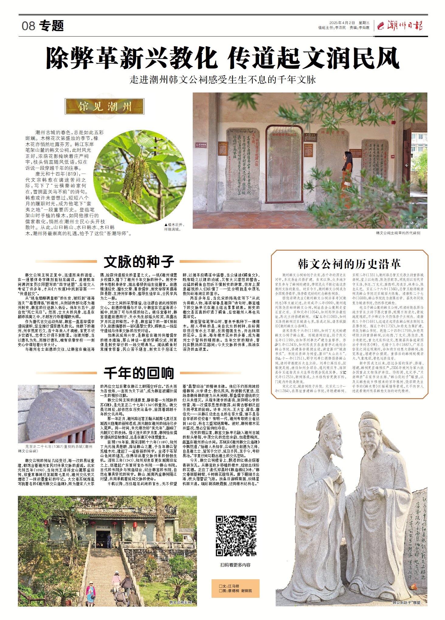 歷史的煙塵里,韓愈文脈早已融入潮州古城的街頭巷陌,中原文化的悠悠余韻,如晨霧晚嵐,氤氳在潮州的山水間。蘇軾在《潮州韓文公廟碑》中慨然道:“始潮人未知學,公命進士趙德為之師,自是潮之士,皆篤于文行,延及齊民,至于今,號稱易治。”字里行間勾勒出潮土的文化密碼。