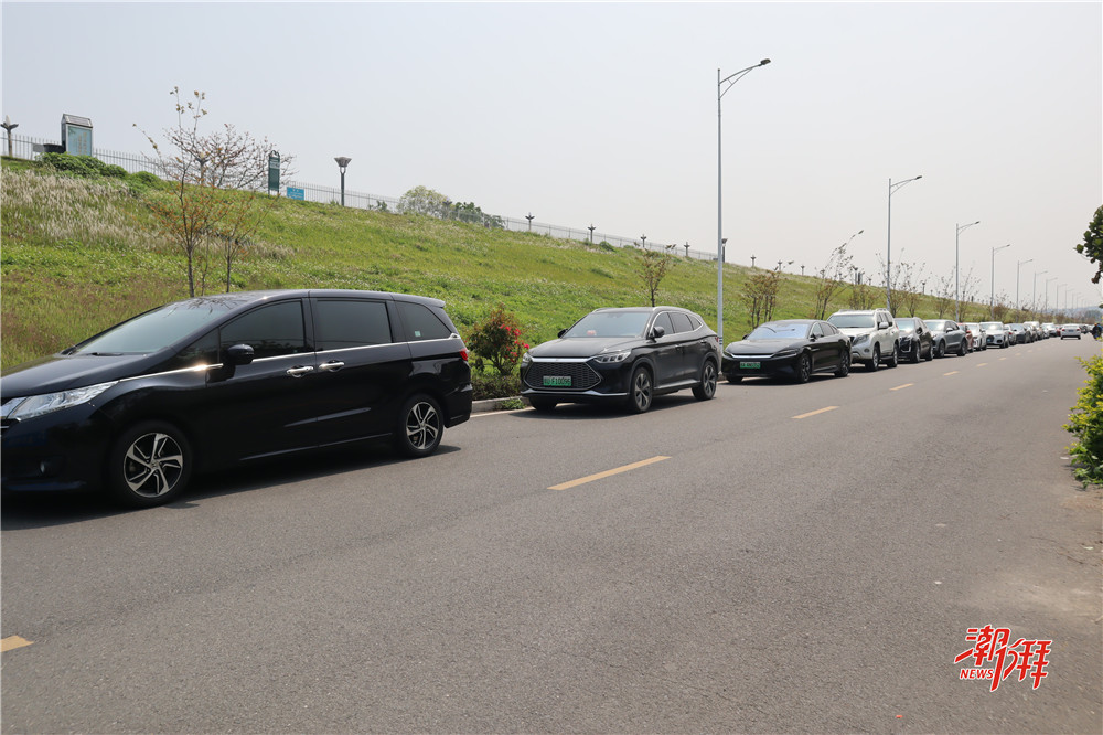在北堤防汛通道,私家車沿道路一側規范停放。(黃慧 攝)