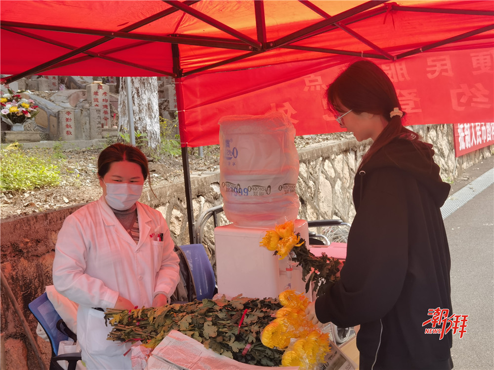 市民們可用香燭紙錢換鮮花。(供圖:市殯儀館)