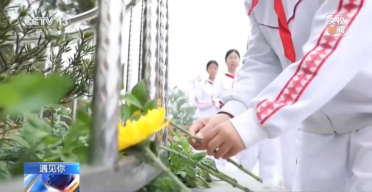 廣東潮州饒平縣所城鎮中心小學的后山上,有一棵特別的松樹,這是2019年,楊恩澤老先生去世后種下的,如今已郁郁蔥蔥。清明前夕,校長楊振永和學生們來到這里,折菊遙寄對楊爺爺的思念。