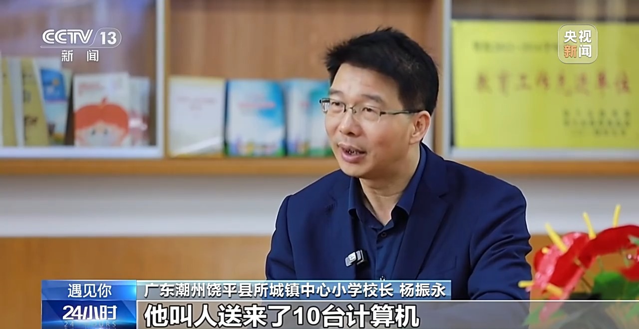 廣東潮州饒平縣所城鎮中心小學校長 楊振永:其實我認識楊教授還是有一定淵源的。2004年的9月份,他叫人送來了10臺計算機,當時我們還不認識他。