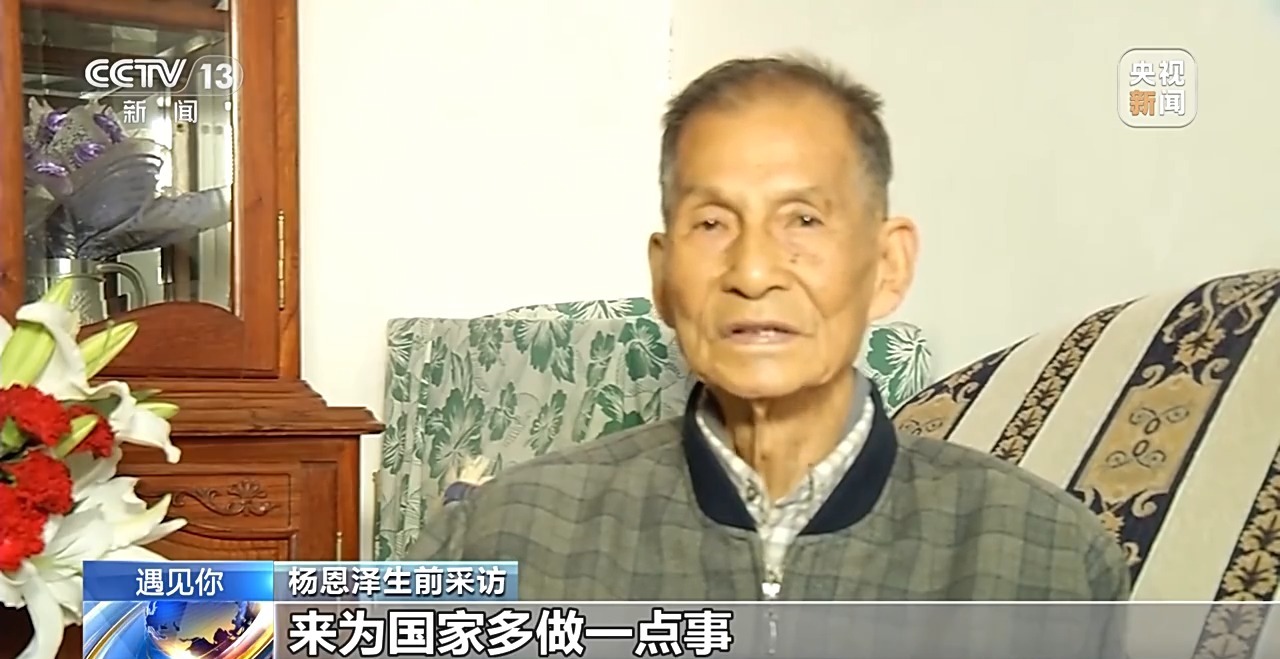 楊恩澤生前采訪:1943年的時候我研究生剛剛畢業就得了肺病。在當時來說這個肺病就是像現在的癌癥一樣,但是我挺過來了,所以我覺得我多活一天就是多賺一天。因此我就覺得我應該盡我的力量來為國家多做一點事。所以多為國家貢獻、多做一點事是我生命最大的意義。