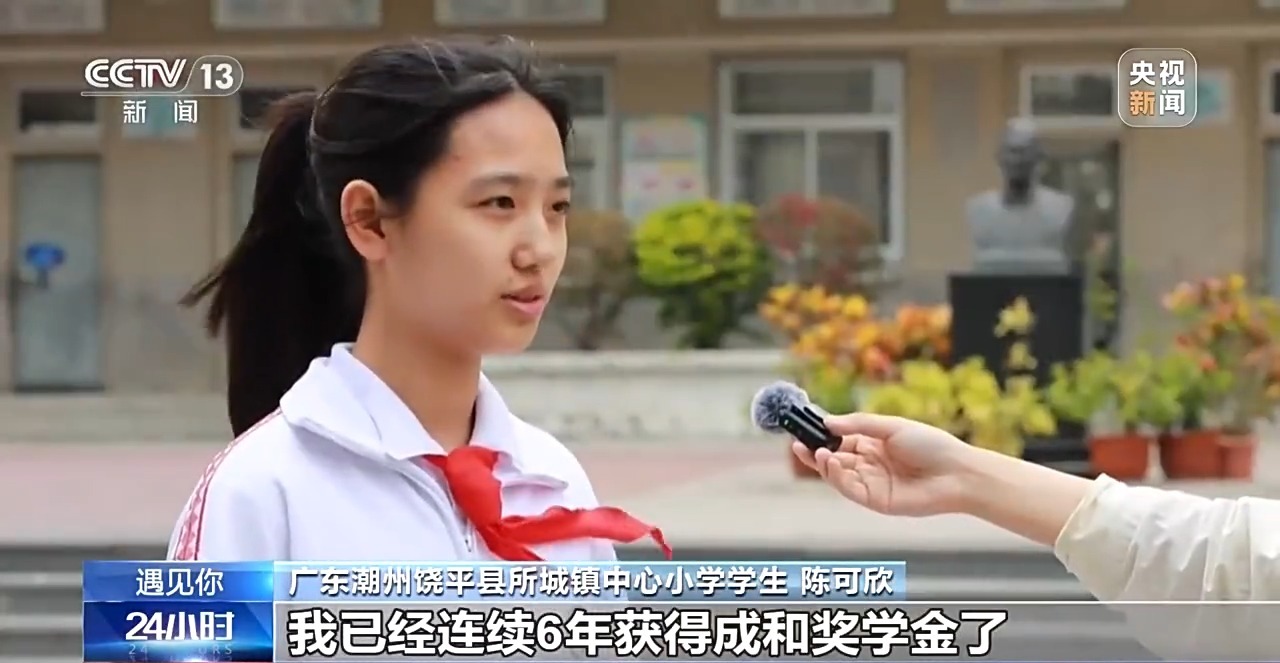 廣東潮州饒平縣所城鎮中心小學學生 陳可欣:我已經連續6年獲得成和獎學金了,老師也會給我們講述這棟教學樓是楊爺爺捐贈的,我也想好好學習,不辜負楊爺爺的期望,努力成長為對社會有用的人。