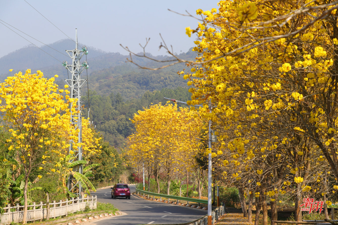 走進湯溪鎮青竹徑村,明艷的黃花風鈴木迎接遠道而來的賓客。它怒放在春風里,仿佛是大自然派來的使者。那滿樹的黃花,猶如璀璨的星辰點綴在枝頭。每一朵花都像是精心雕琢的藝術品,花瓣柔軟而細膩,顏色鮮艷而奪目,在陽光的照耀下熠熠生輝,美得讓人心醉。