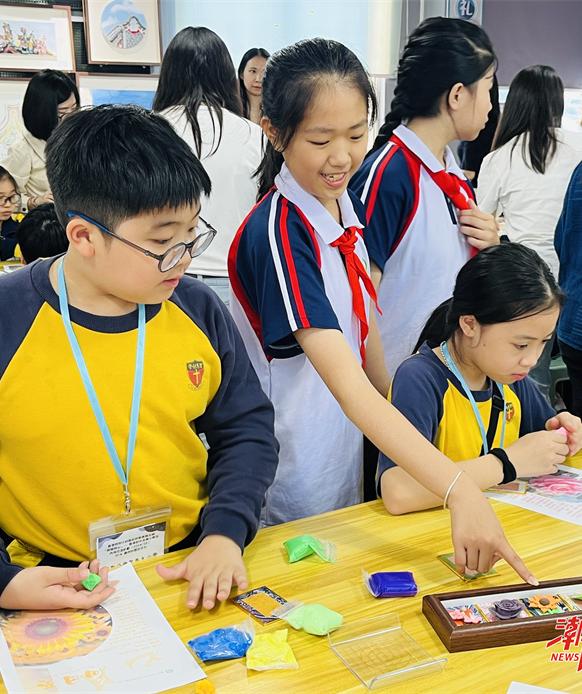 活動中,內畔小學師生帶領香港師生沉浸式體驗潮州文化及校園氛圍。內畔小學的學生化身“小小講解員”,以猜謎語、寫毛筆字等互動形式,帶領香港小伙伴探尋漢字的奧秘;內畔小學的學生家長還現場為香港師生制作潮州人清明節前后必吃的樸枳粿。