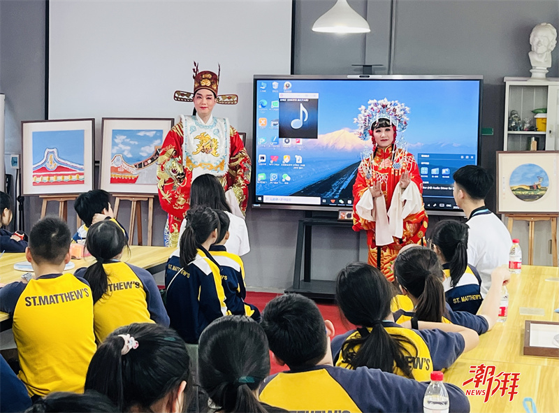 在內畔小“潮”文化藝術工作坊,兩校師生以座談交流和美育體驗形式共話兩地校園文化。內畔小學特別邀請了潮劇藝人現場演繹經典唱段《京城會》……活動現場歡聲笑語不斷,兩校師生還互贈了紀念品,表達了彼此的深厚情誼和美好祝愿。