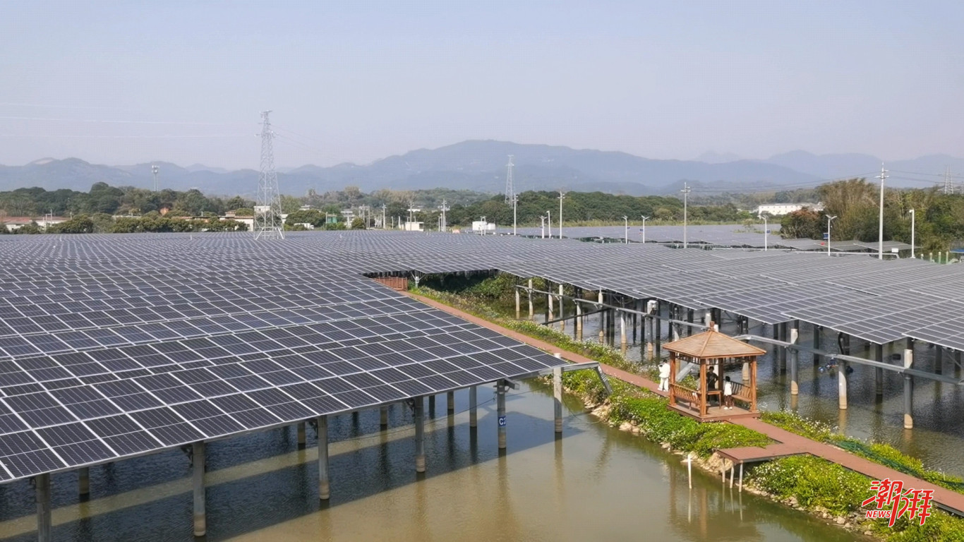 千畝魚塘水面上,一排排光伏板整齊排列,將陽光轉化為清潔電能;光伏板下,小龍蝦悠然游動,成為村民致富的“金鑰匙”。近年來,潮安區歸湖鎮以鳳東村、金光村等地為試點,實施漁光互補光伏發電項目,通過“光伏+農業”“光伏+文旅”等多元模式,推動新能源產業與鄉村振興深度融合,走出一條生態優先、產業興旺、村民共富的綠色發展之路。