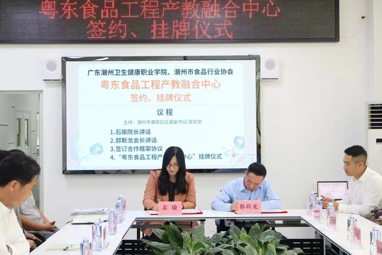 活動(dòng)中,廣東潮州衛(wèi)生健康職業(yè)學(xué)院與潮州市食品行業(yè)協(xié)會(huì)簽訂《粵東食品工程產(chǎn)教融合中心合作框架協(xié)議》,雙方將重點(diǎn)推進(jìn)育人、招聘、學(xué)歷晉升、技能培訓(xùn)認(rèn)定等四大領(lǐng)域合作,通過“訂單式”協(xié)同育人,依托協(xié)會(huì)下屬企業(yè)建立實(shí)訓(xùn)基地,校企共定培養(yǎng)方案,讓學(xué)生在生產(chǎn)制造、質(zhì)量管控等環(huán)節(jié)中錘煉技能;共建人才招聘平臺,通過智能化信息匹配,為企業(yè)提供與優(yōu)秀畢業(yè)生直接對接的機(jī)會(huì),提升招聘效率和質(zhì)量。同時(shí),構(gòu)建企業(yè)員工學(xué)歷提升通道,面向企業(yè)員工開設(shè)“現(xiàn)代學(xué)徒制”學(xué)歷提升項(xiàng)目,滿足企業(yè)員工自身職業(yè)規(guī)劃和發(fā)展需求,此外,聯(lián)合開展技能培訓(xùn)與認(rèn)定,整合學(xué)校優(yōu)質(zhì)師資與行業(yè)技術(shù)骨干力量,聯(lián)合設(shè)立標(biāo)準(zhǔn)化職業(yè)技能認(rèn)定點(diǎn),開展職業(yè)技能培訓(xùn)與考核認(rèn)定,全面提升從業(yè)人員技能水平。