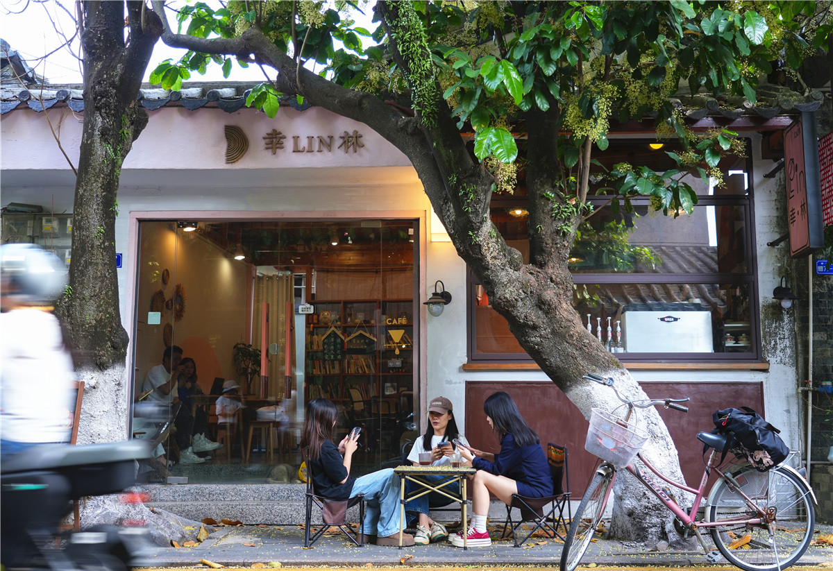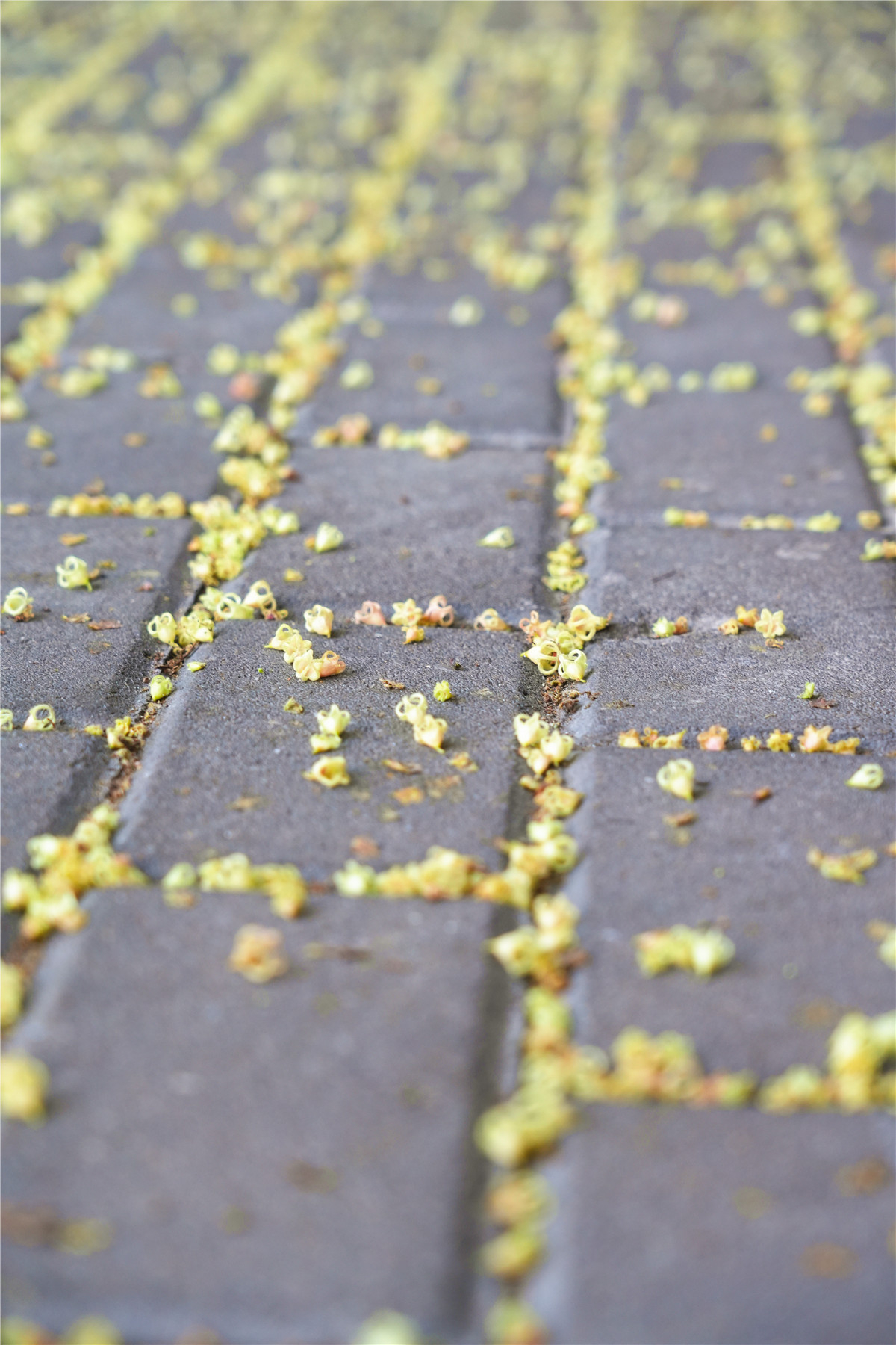 微風吹起,撒落的花朵便隨風輕舞,如雪似霜,空氣伴隨著花香沁人心脾;風過花落,地上無數的花朵像是緩緩展開的信箋,那是春天寄給人間的私語。過往的行人也忍不住停下腳步,抬頭觀賞。在喧鬧的城市中,與好友相伴坐于樹下,相談甚歡,任由花朵落在杯盞中,落在青絲上,盡情享受這一段悠閑清雅的時光。