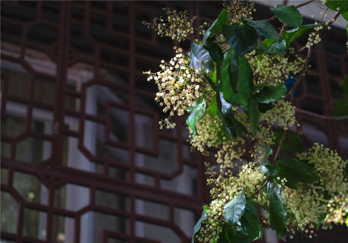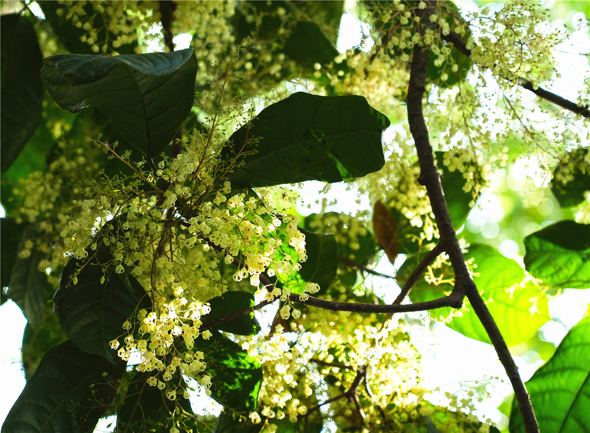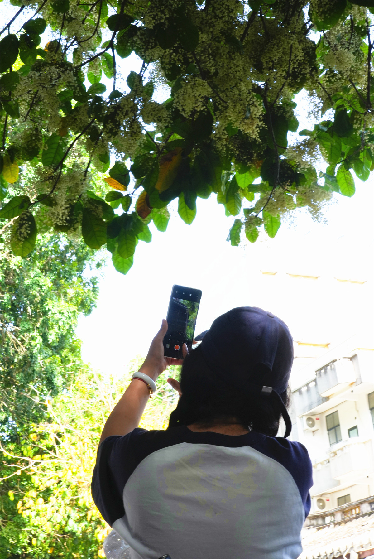 潮州古城中山路:暮春蘋婆花盛開 繁星點點落枝頭