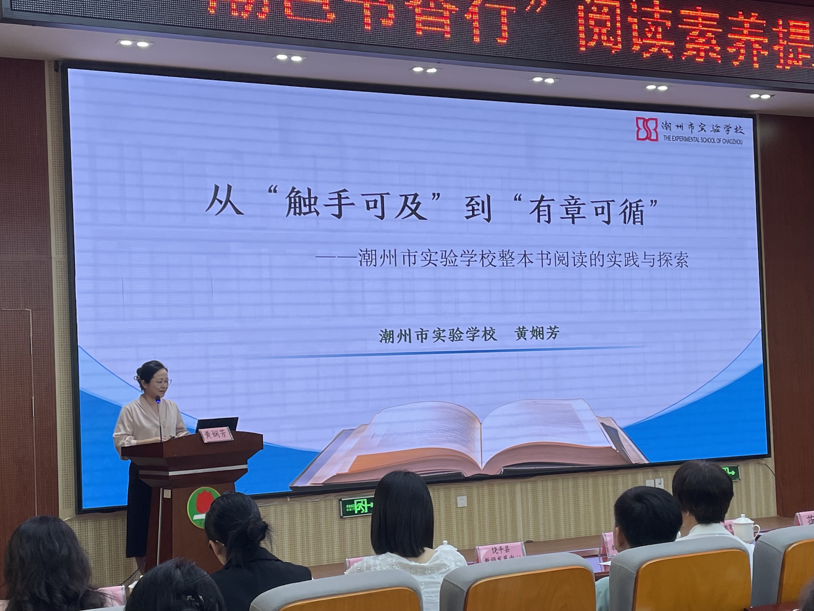 市實驗學校、市綿德小學、湘橋區陽光實驗學校、湘橋區興華學校等4所“試點?!钡慕處煷磉€上臺作主題發言,分享學校在整本書閱讀與書香校園建設的實踐探索,為推動全市閱讀教育發展提供借鑒。