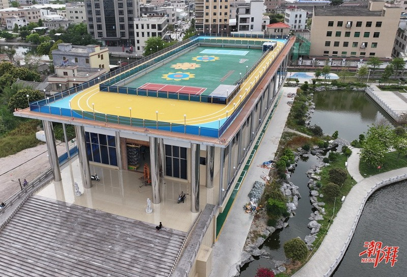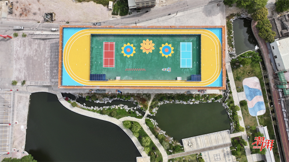 米黃色大跑道、紅藍兩個羽毛球區域、中間大塊綠色休閑場地,在潮安區沙溪鎮上西林村,一個配色活潑、占地約2400平方米的“空中運動場”就建在西林大禮堂的天臺。每到傍晚時分,運動場上就開始熱鬧起來,青少年在上面打羽毛球,老人們則在跑道上慢慢地散著步,享受悠閑時光。