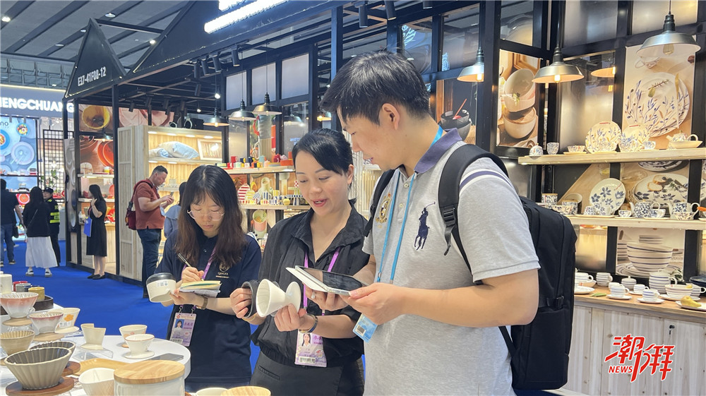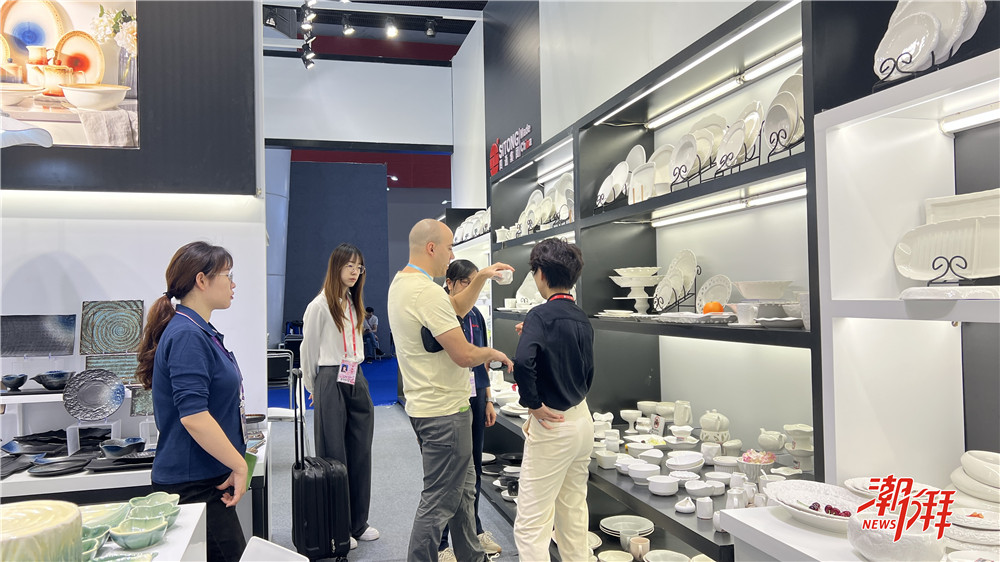 潮州市千悅陶瓷有限公司的展位同樣熱鬧,總經理林淑凌正熱情地向客戶介紹餐具、茶具等系列新品。據了解,為更好地滿足市場需求,此次廣交會,千悅陶瓷針對不同市場開發了特色產品,如專為女性市場設計的首飾盤、針對南美市場推出的香薰墊盤等,一系列獨具匠心的產品贏得眾多采購商的青睞。