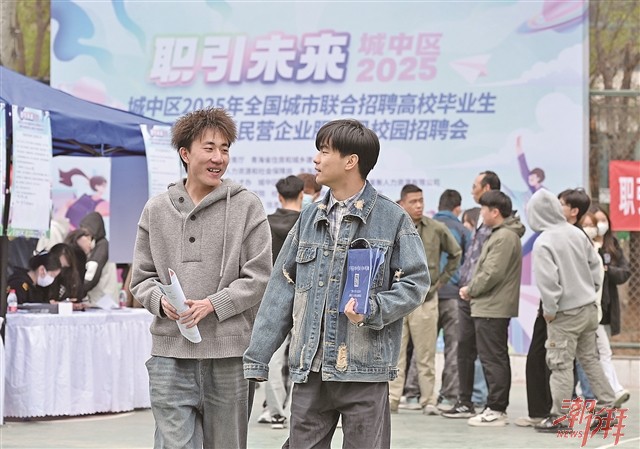 4月23日,學生在校園招聘會上。當日,青海建筑職業技術學院舉行2025屆高校畢業生建筑、通信行業專場招聘會,共有45家用人單位提供1700多個崗位,吸引眾多應屆畢業生前來應聘。 新華社發