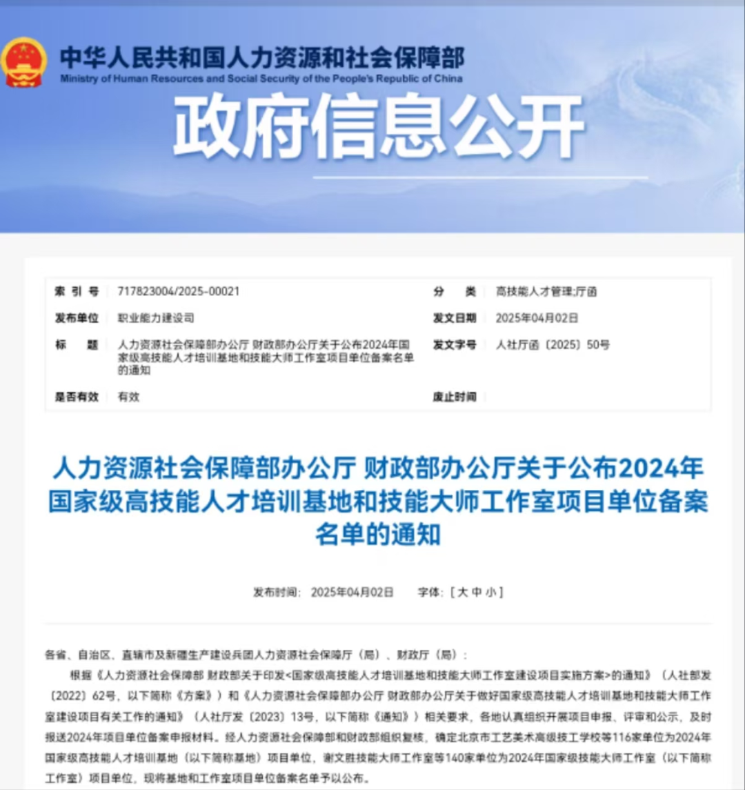 近日,人力資源社會保障部辦公廳、財政部辦公廳公布2024年國家級高技能人才培訓基地和技能大師工作室項目單位備案名單,我市孫文生技能大師工作室榜上有名,獲評國家級技能大師工作室。這是我市繼王鴻鑫技能大師工作室獲評后,又一國家級技能大師工作室。